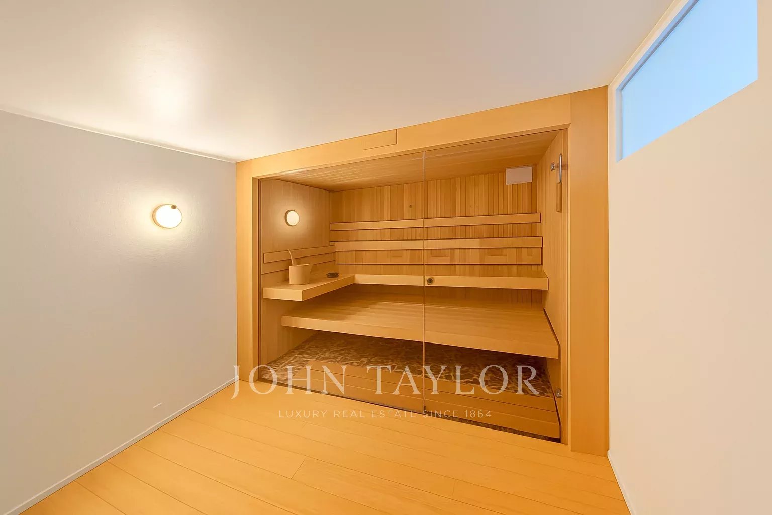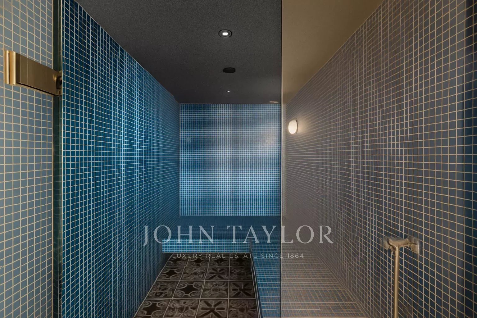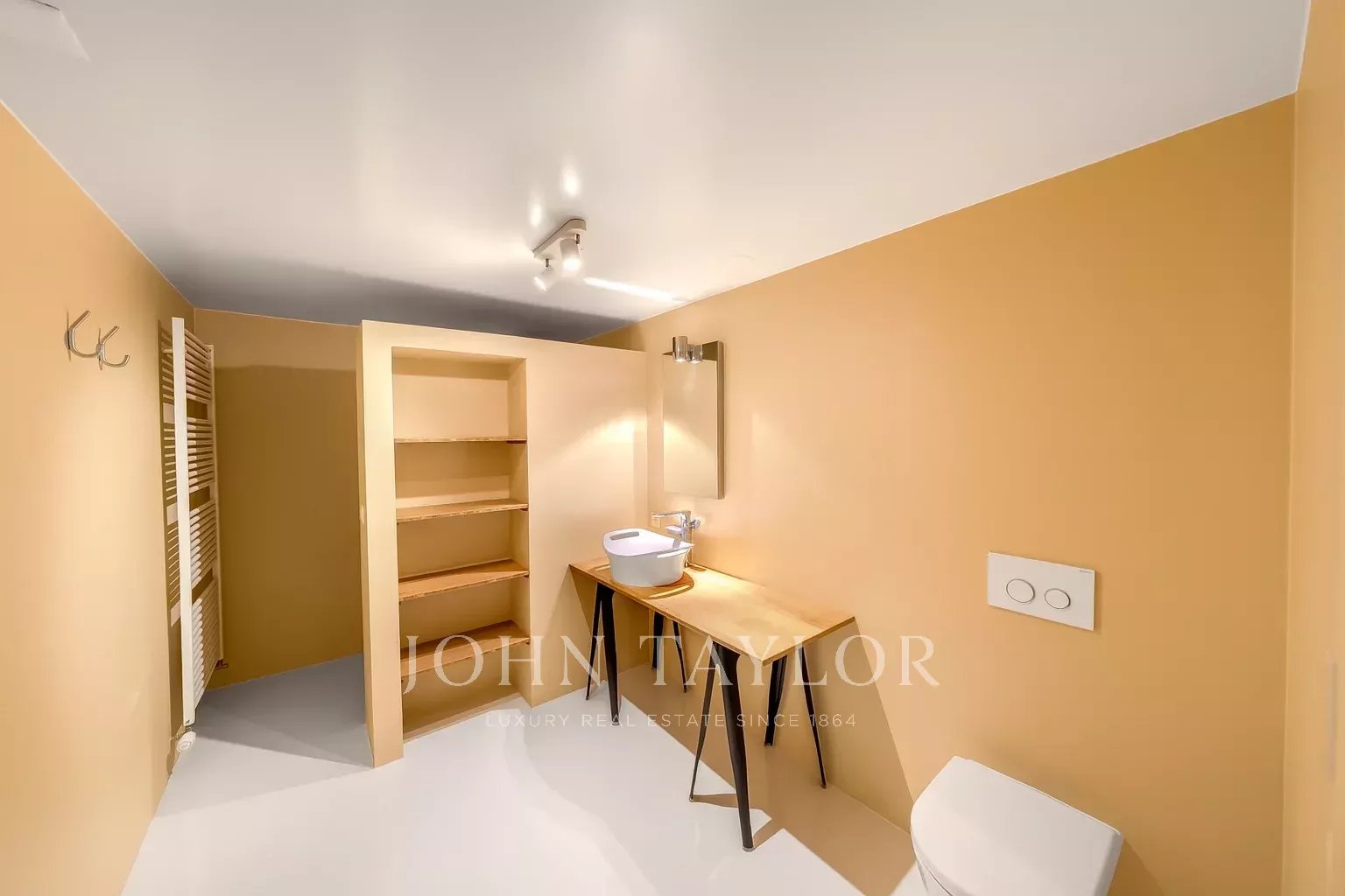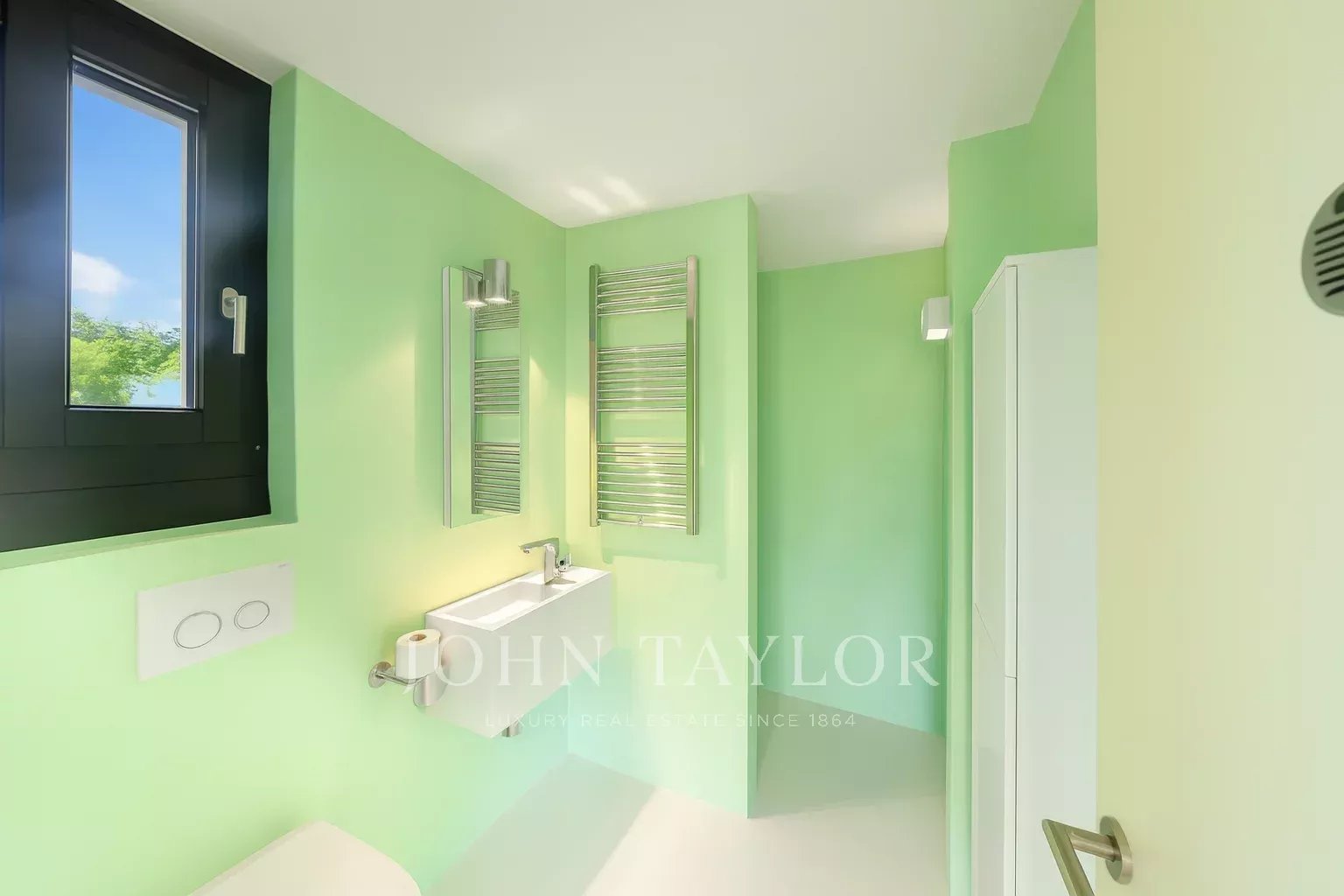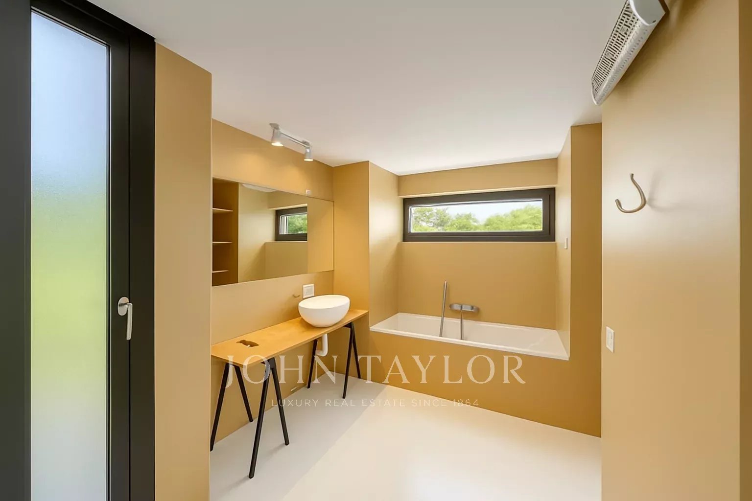Outside, the beautifully landscaped garden offers a variety of options for relaxation and entertaining, with several terraces ideal for enjoying outdoor dining or quiet moments.