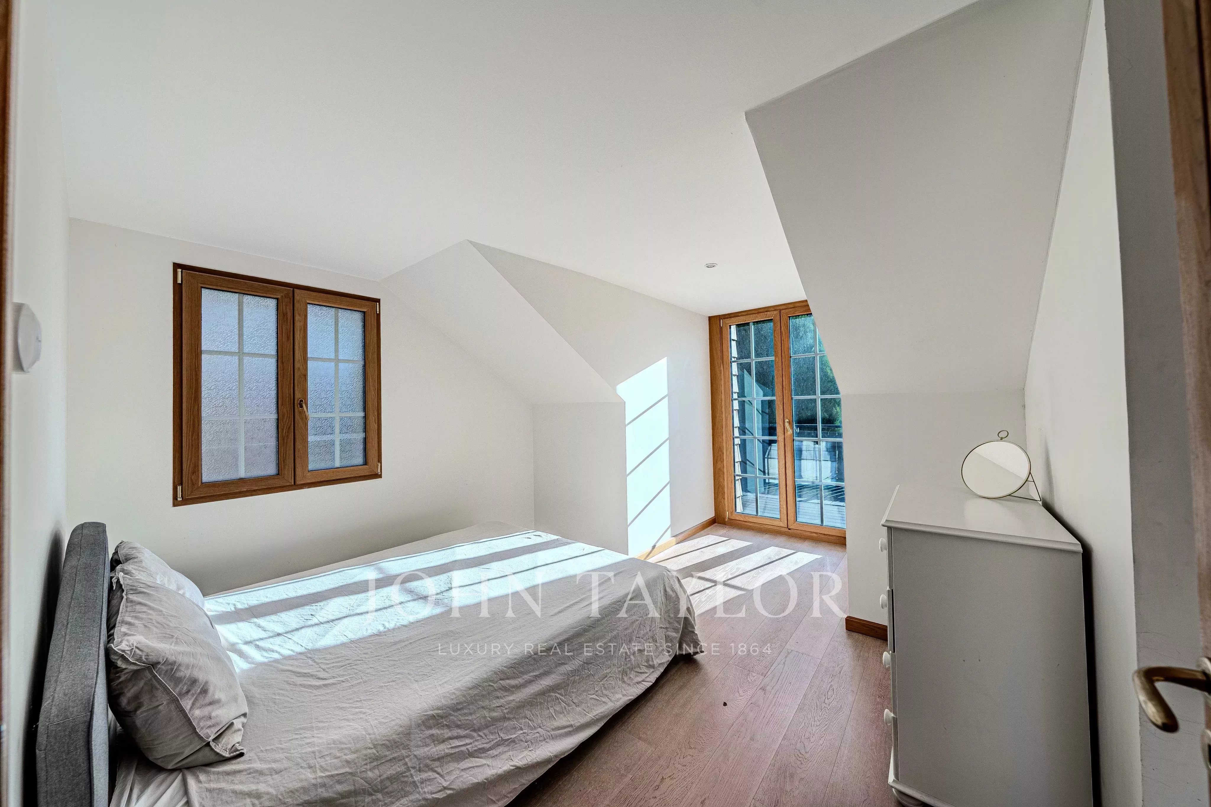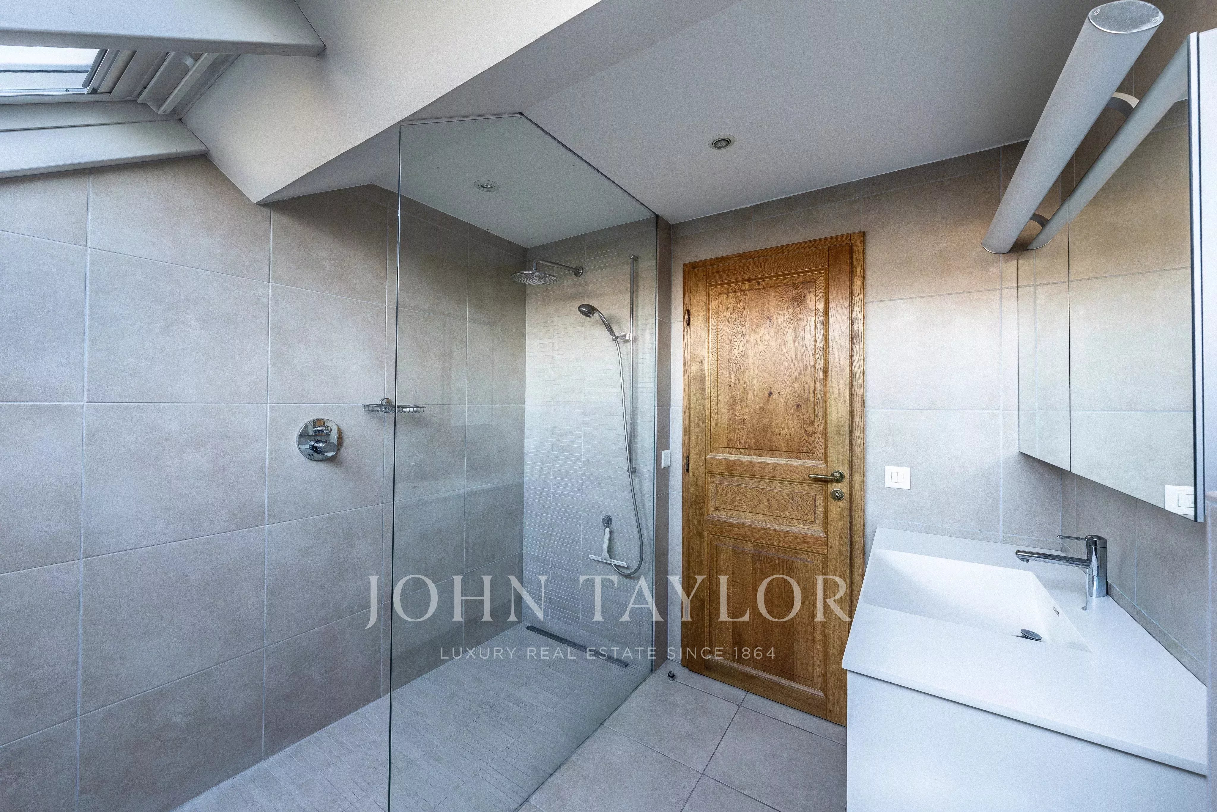 - The second floor houses the main sleeping area and offers three bedrooms, including a master bedroom with dressing room and terrace access, a large bedroom also opening onto a terrace, and a third bedroom. A modern shower room with walk-in shower completes this level.