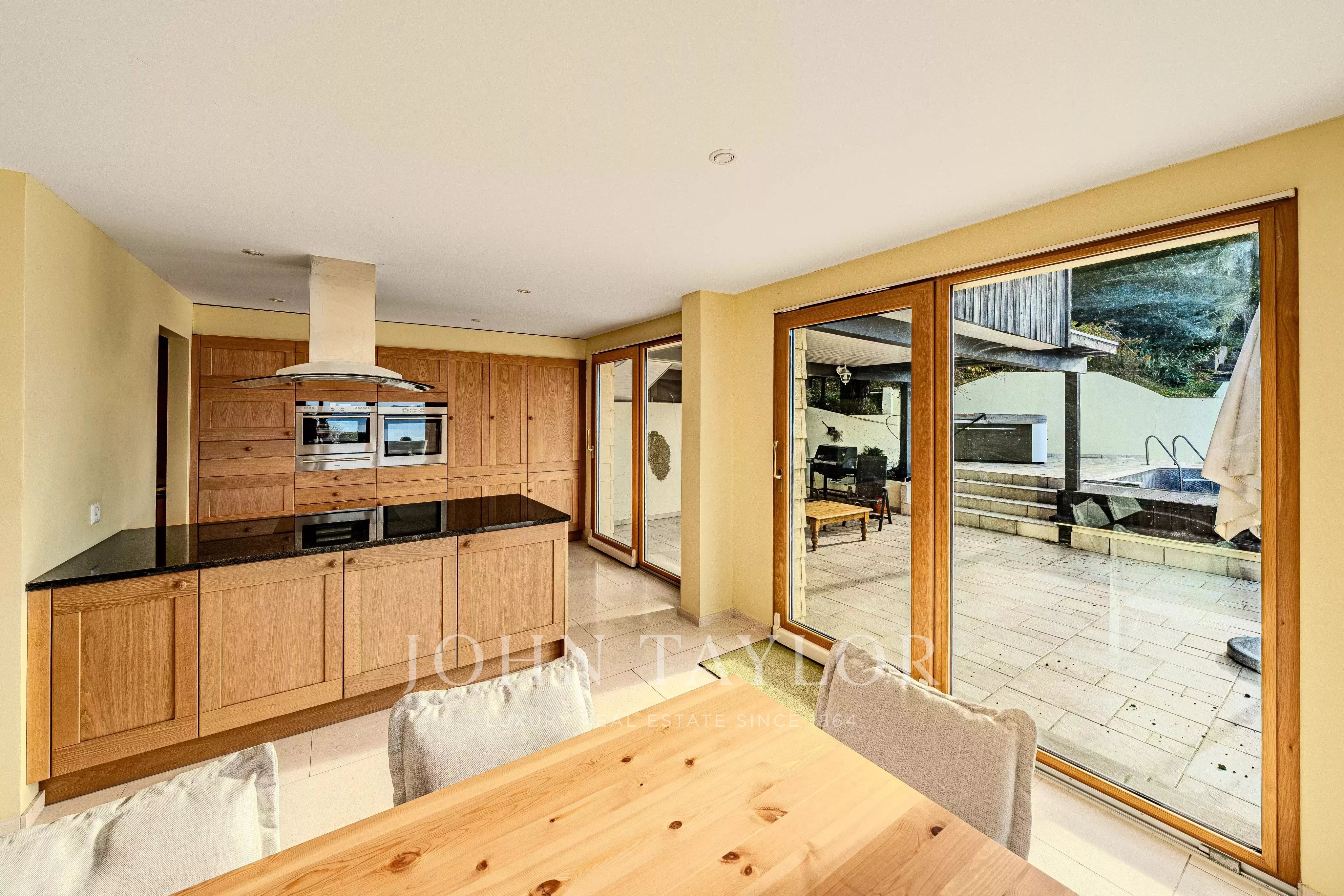 The outdoor areas are one of the key highlights of the property. A heated outdoor swimming pool, a jacuzzi and several terraces provide the perfect setting for relaxation throughout the year. The garden is tastefully arranged and includes a separate garden pavilion as well as a covered winter garden, ideal for plant lovers or for enjoying quiet moments sheltered from the weather.