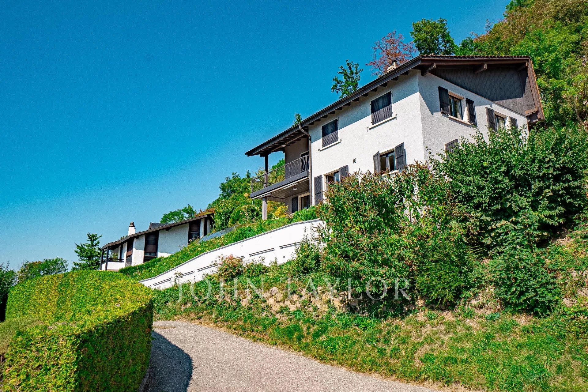 -Situated in a dominant position in a quiet, residential area just a few minutes from the heart of Montreux (Chernex).
