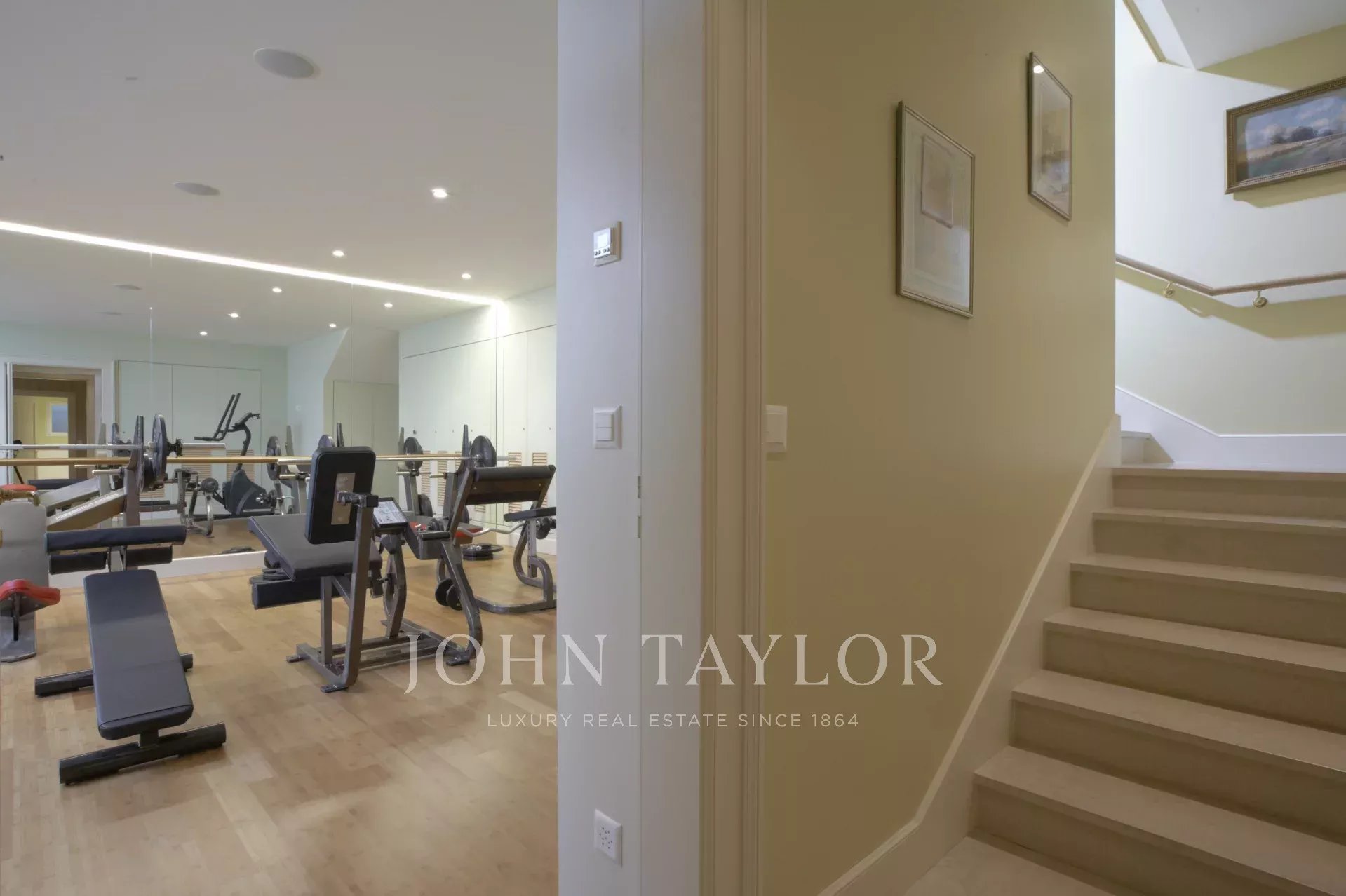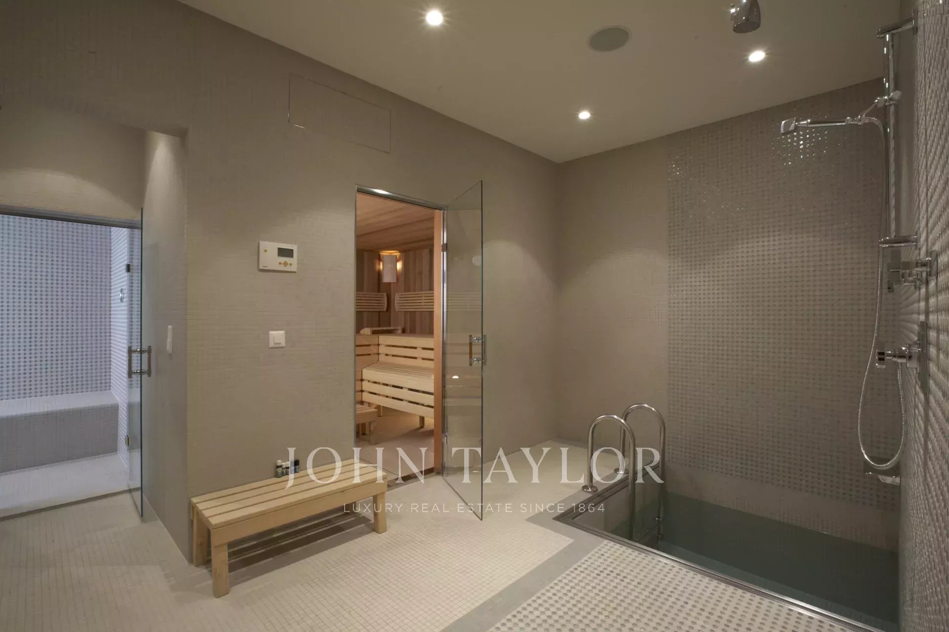 A fitness center, a Spa with hammam, sauna and massage room, a wine cellar, a professional laundry room, multiple storage spaces, a secure garage for six cars as well as a second covered garage for six cars also complete this exceptional property.