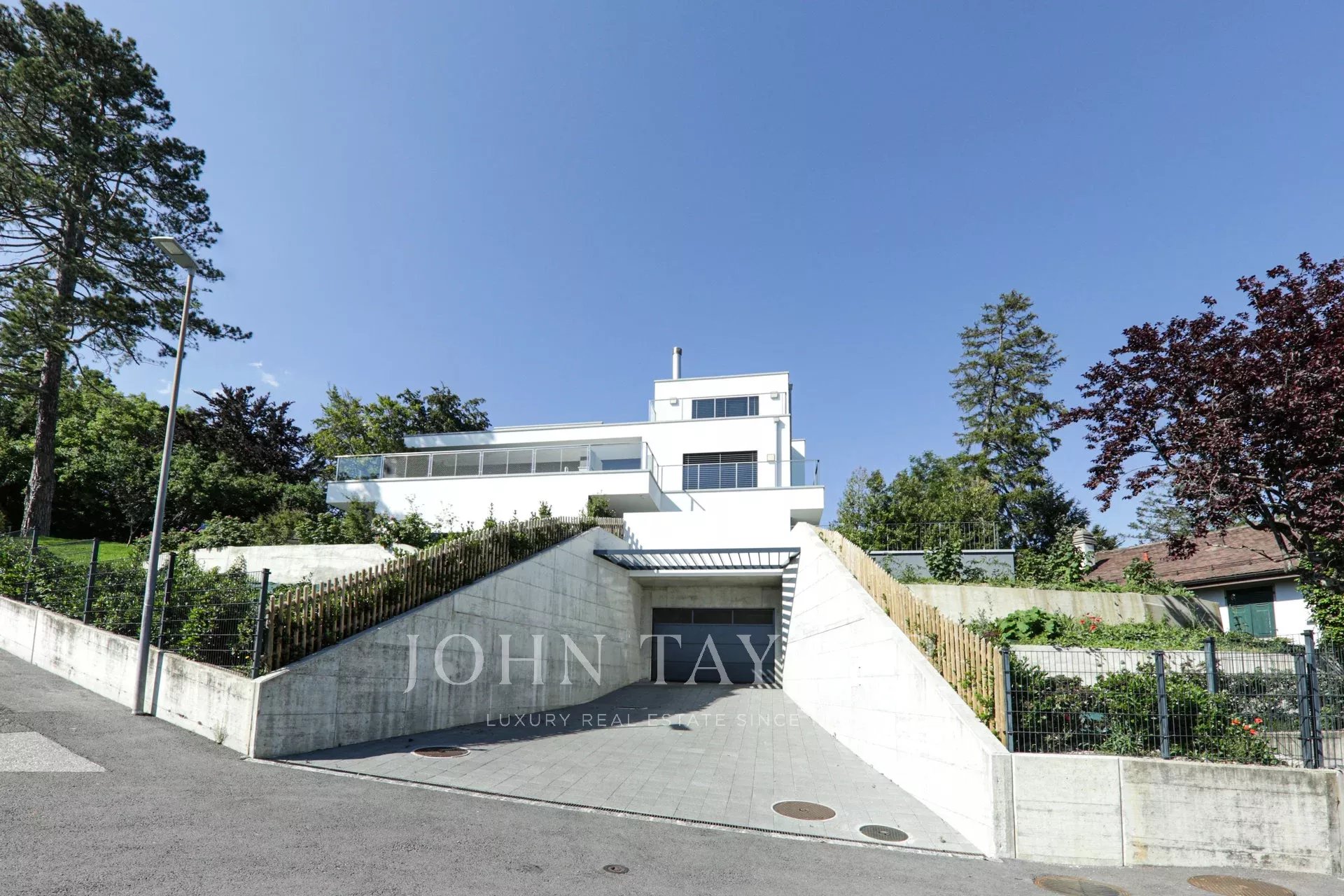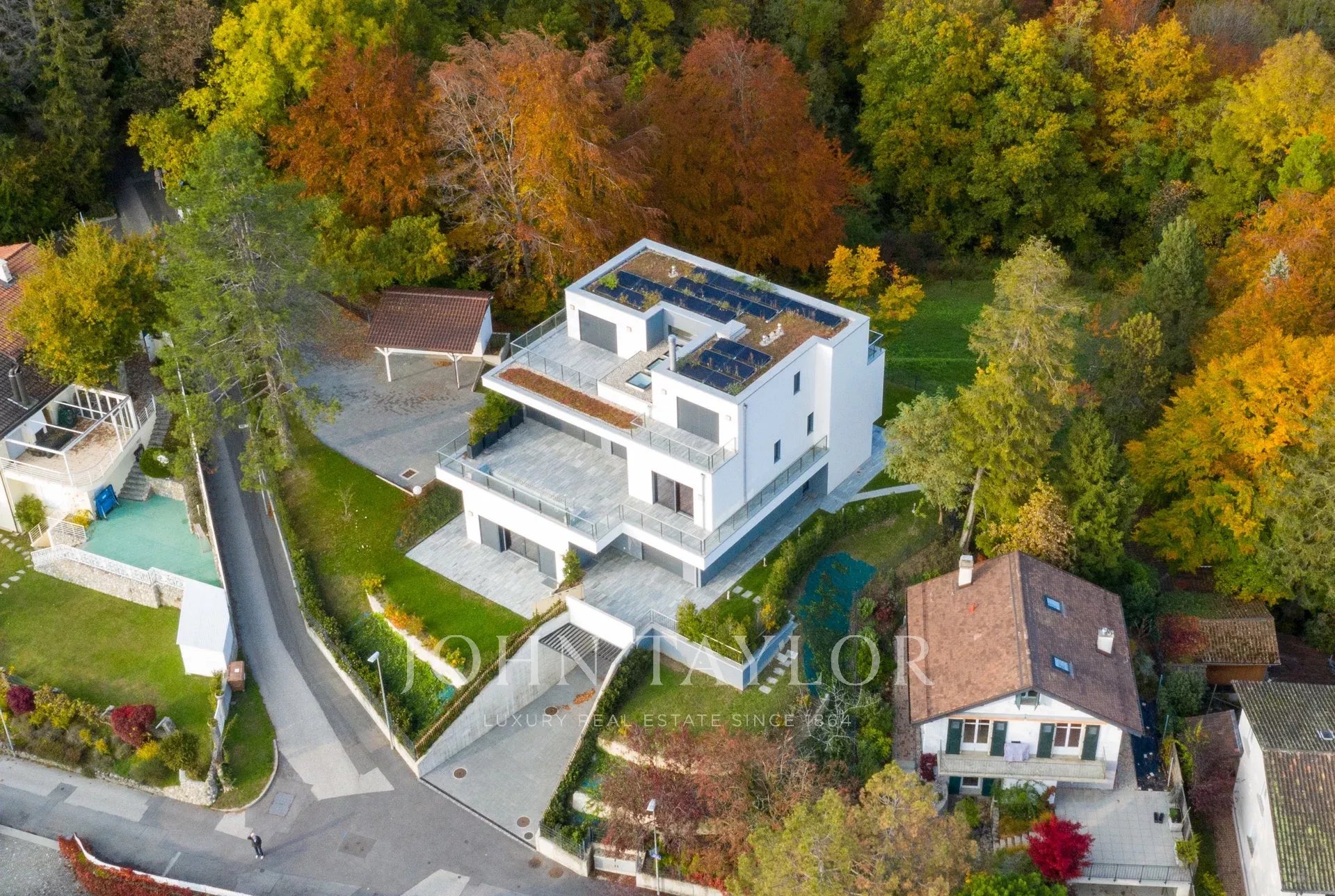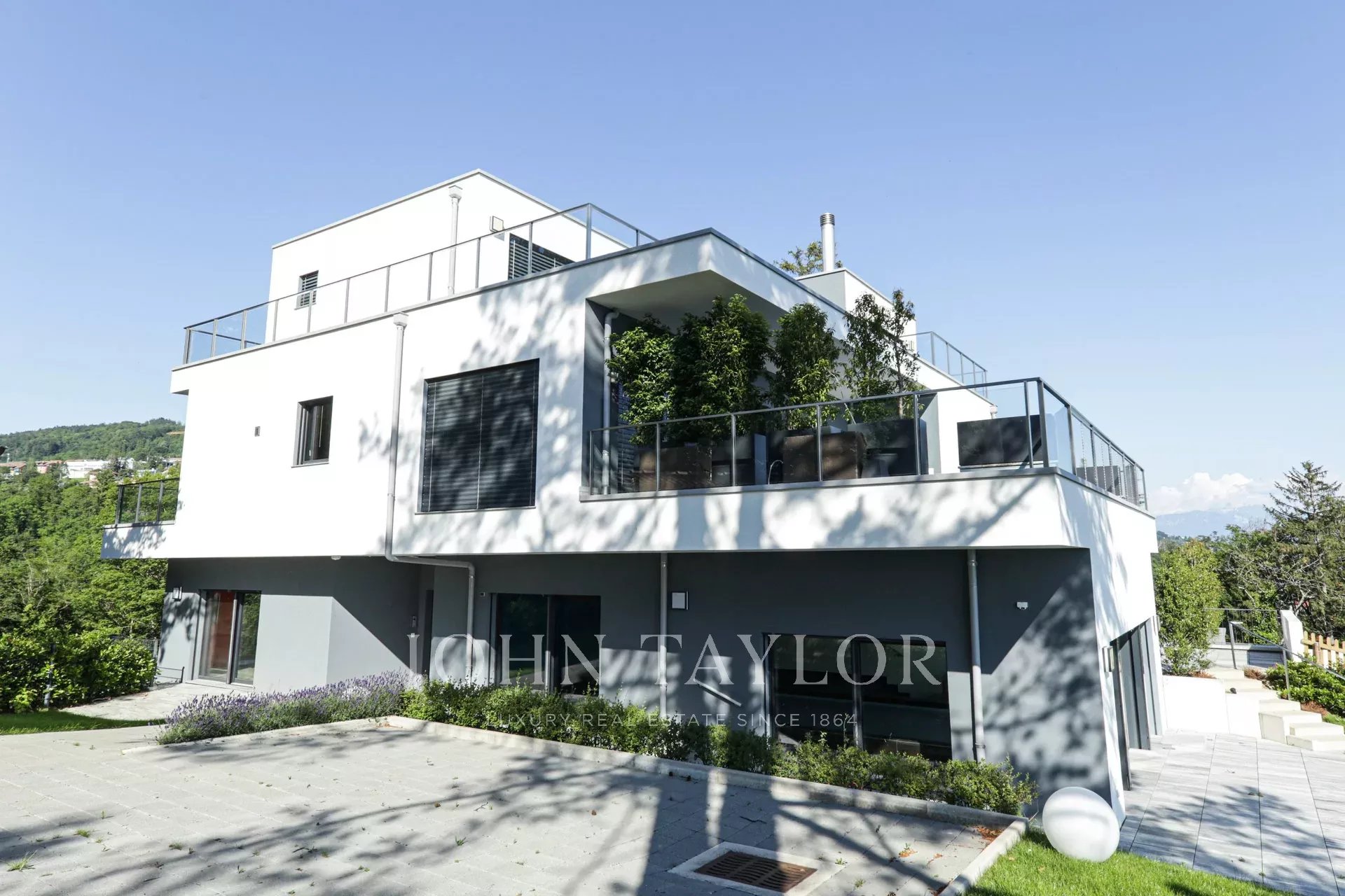 This magnificent house in Pully, Switzerland, spans 658 m² and comprises 8.5 rooms, including 5 spacious bedrooms. Features include a fireplace, sliding windows and a solar panel system guaranteeing low energy consumption. The large picture windows offer spectacular views of the surrounding landscape.