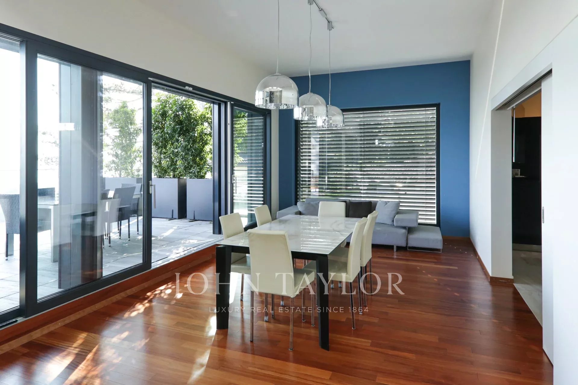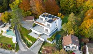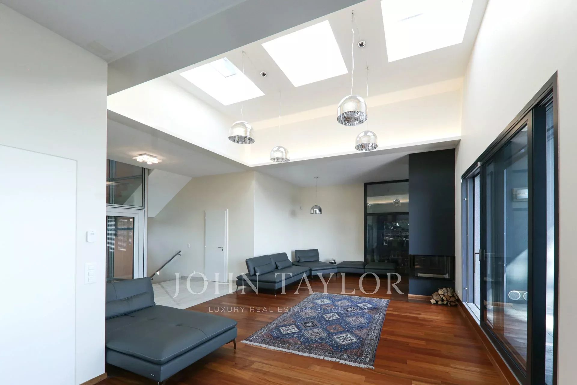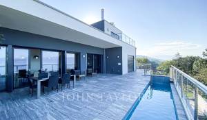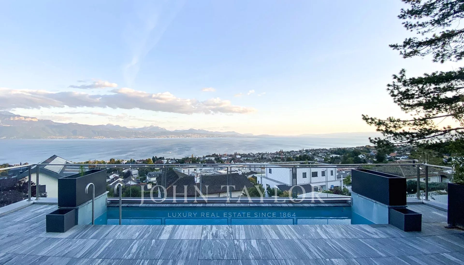 This magnificent house in Pully, Switzerland, spans 658 m² and comprises 8.5 rooms, including 5 spacious bedrooms. Features include a fireplace, sliding windows and a solar panel system guaranteeing low energy consumption. The large picture windows offer spectacular views of the surrounding landscape.