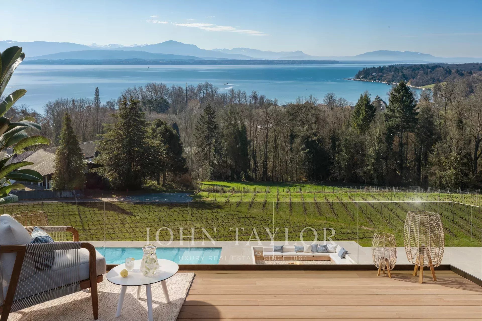 -Panoramic view of lake and Alps