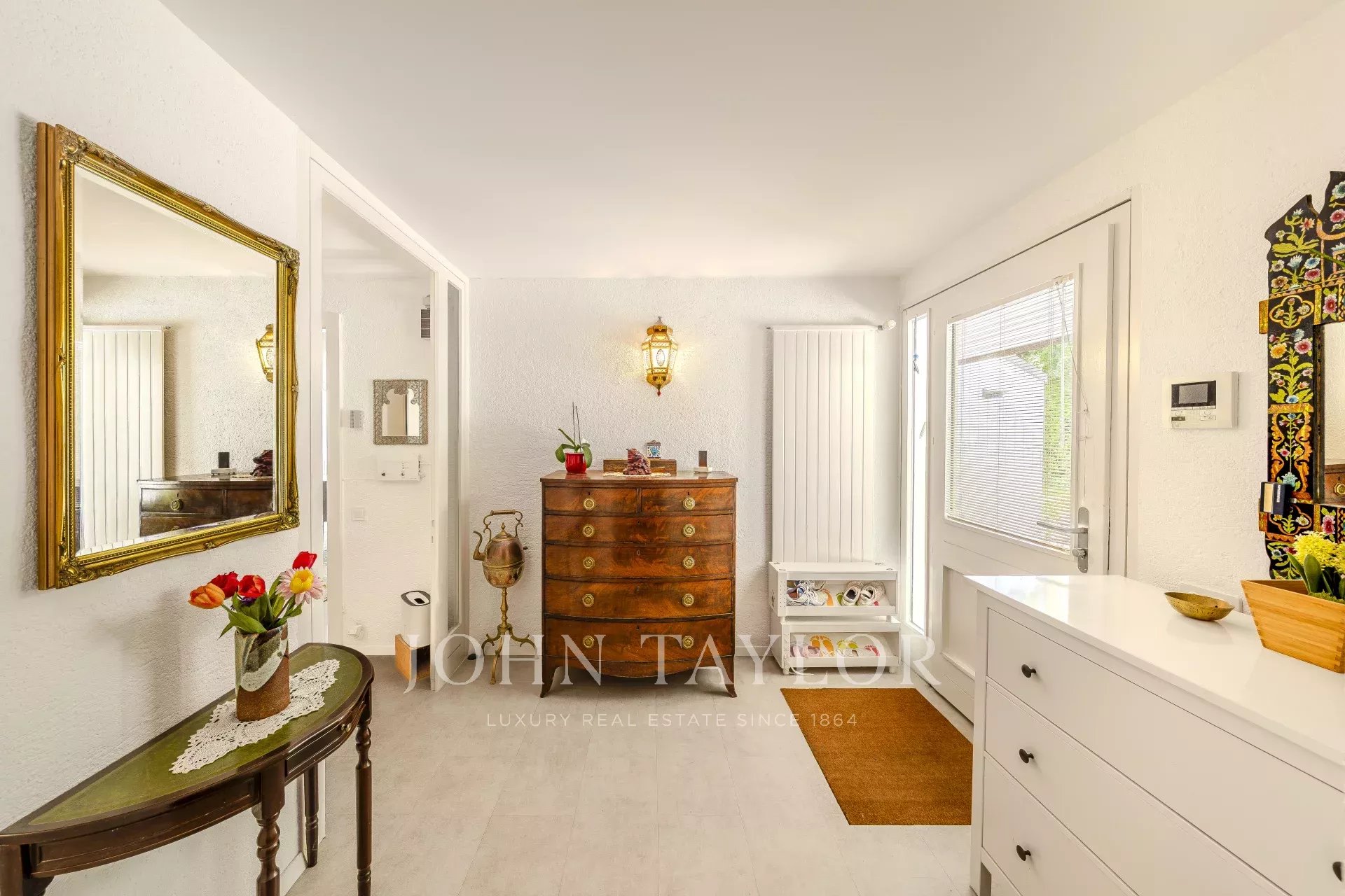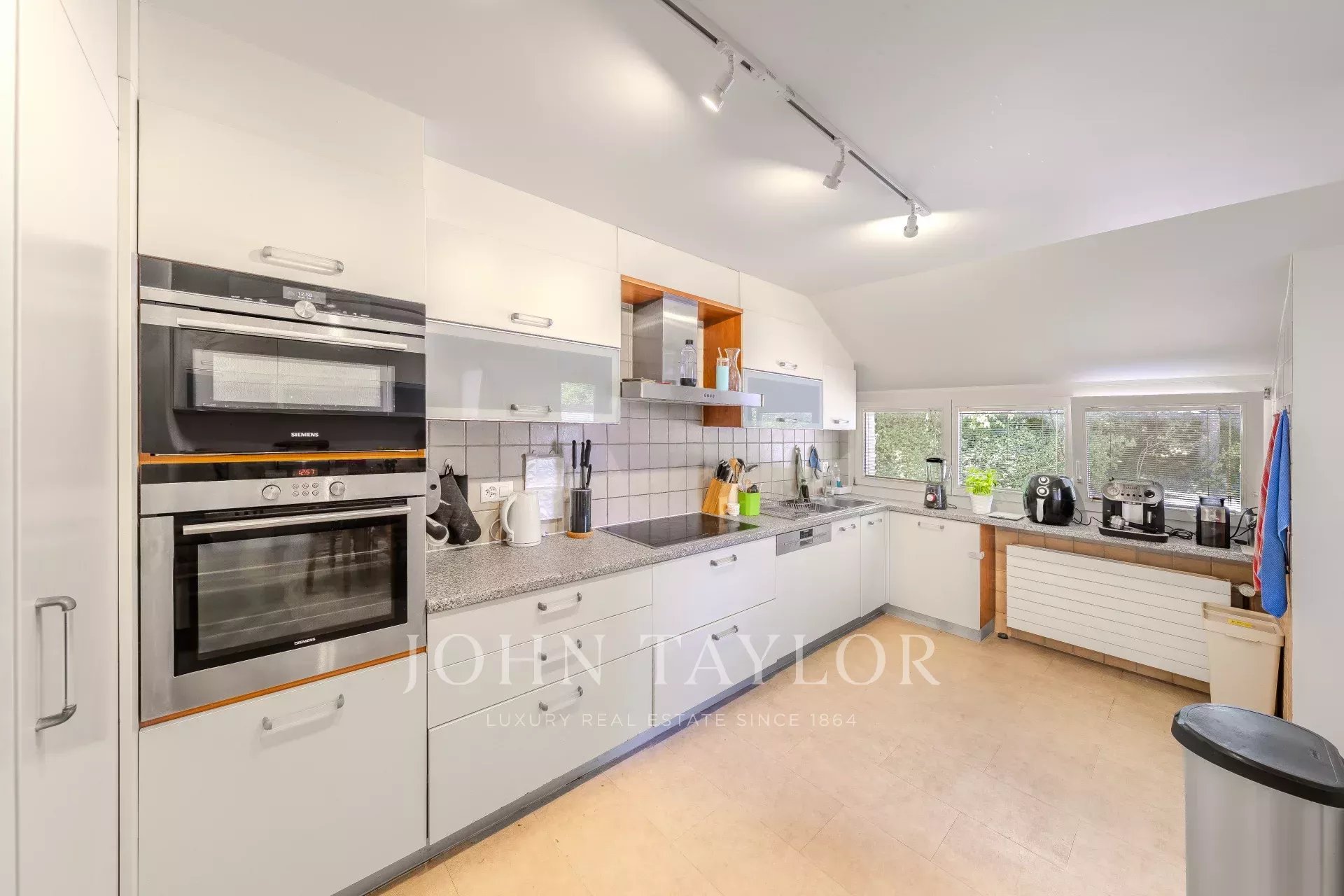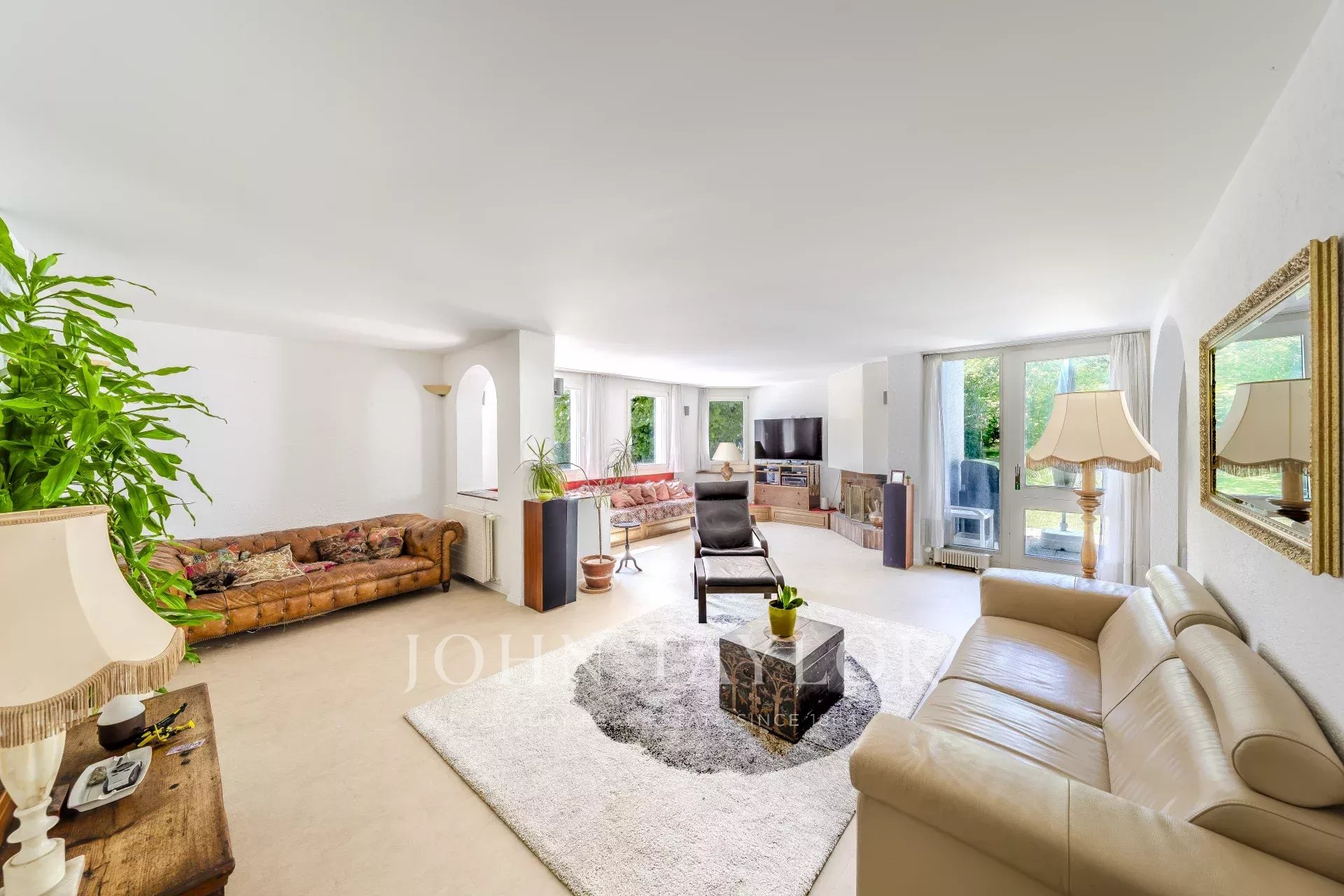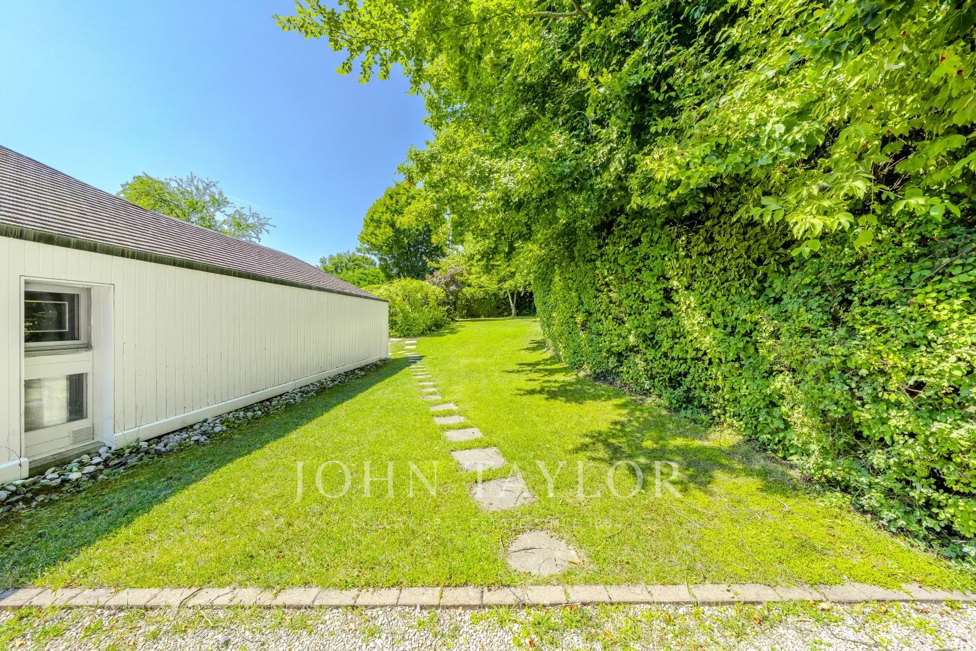Outdoors, the landscaped garden with swimming pool is complemented by a 33 m² double garage and a large entrance courtyard.