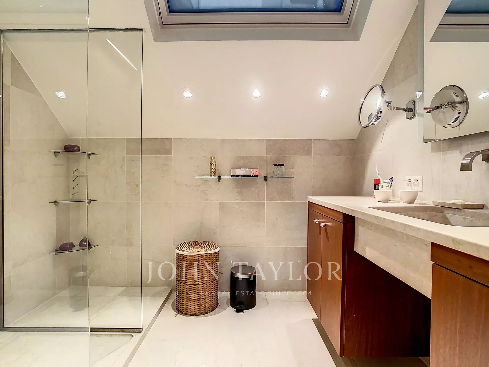 Spread over two levels and a basement, the first floor, opening onto a large double reception room, offers two vast lounges, one of which features a beautiful fireplace, a large kitchen/dining room opening onto the magnificent garden and adjoining terrace, as well as an office and bathroom.