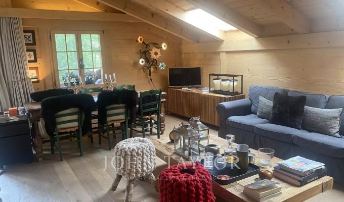 Modern ground floor apartment in central Gstaad. Spacious living room with modern fire ...