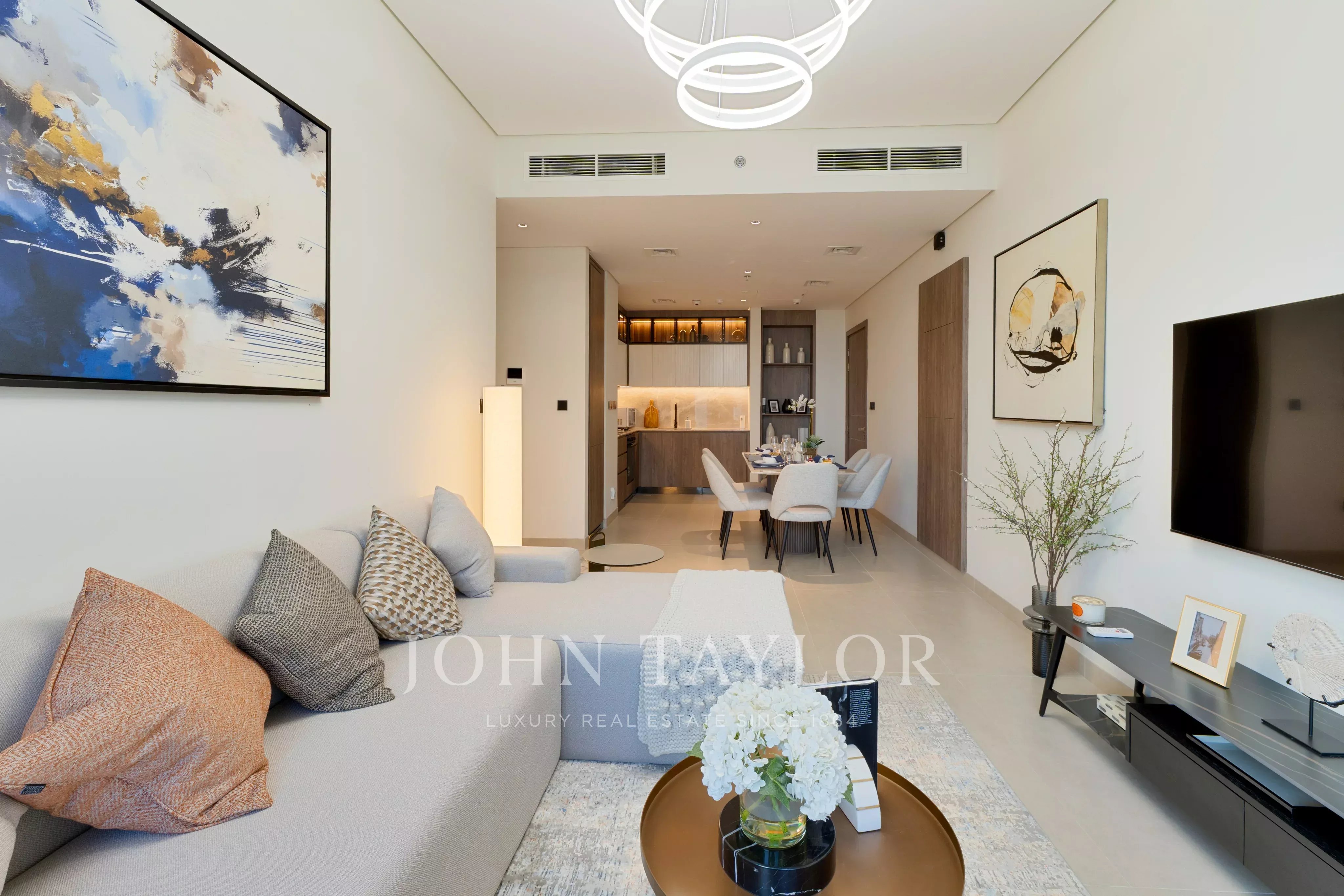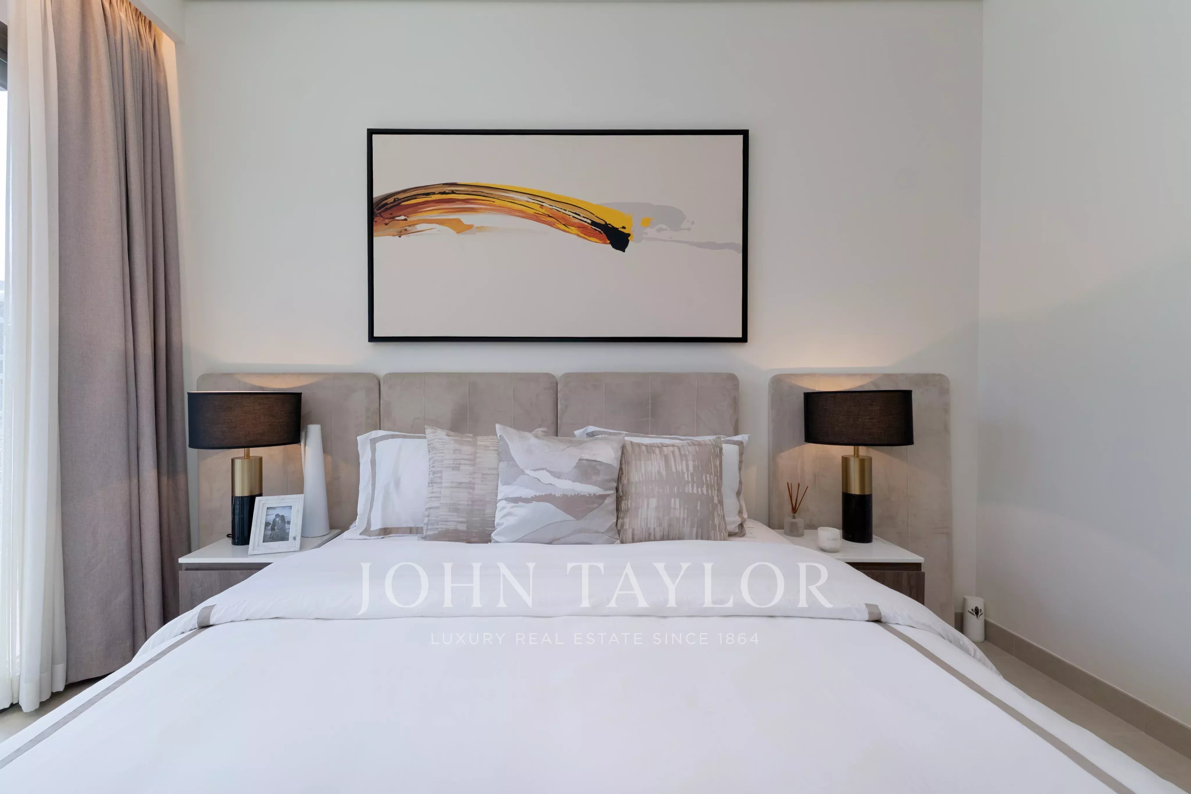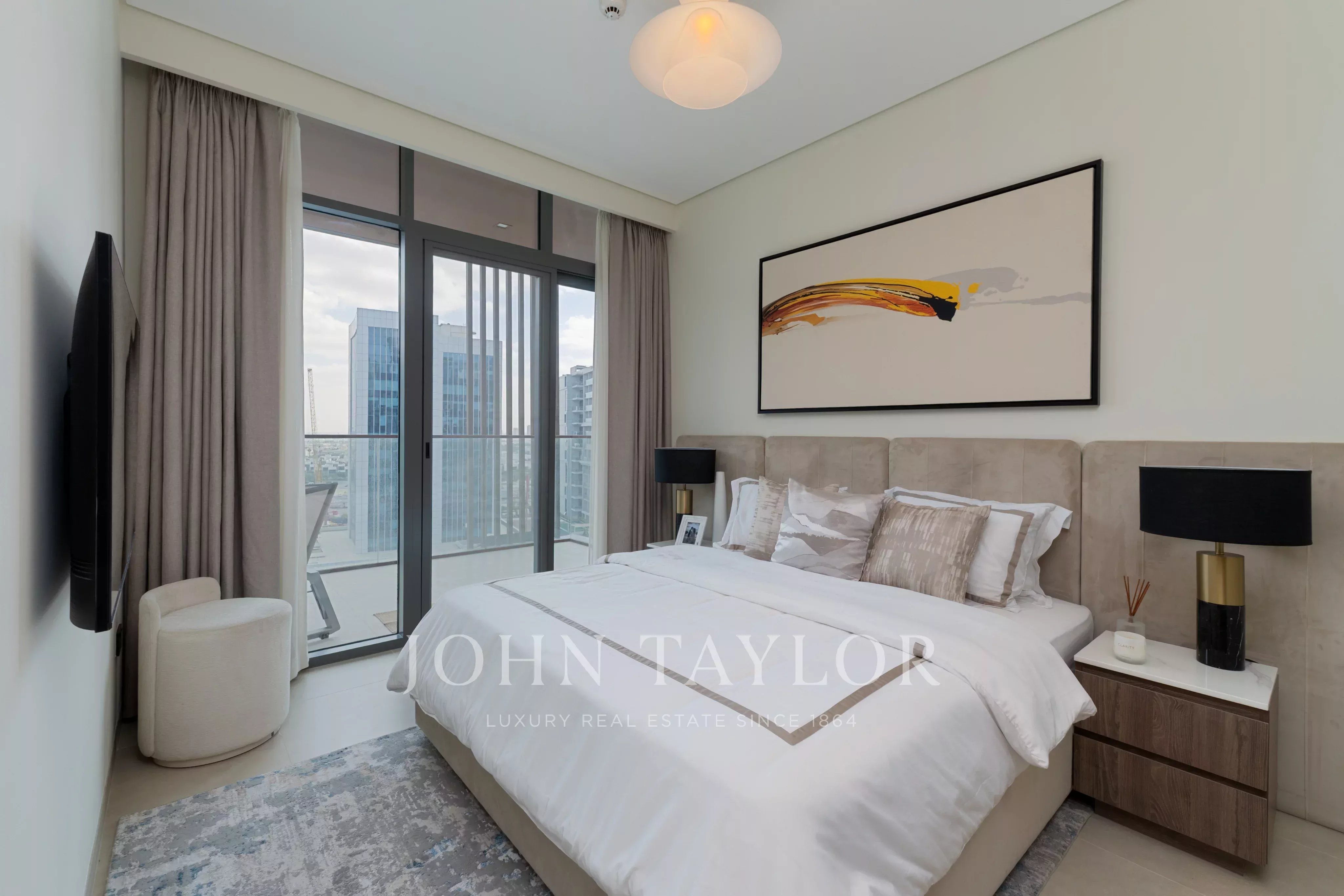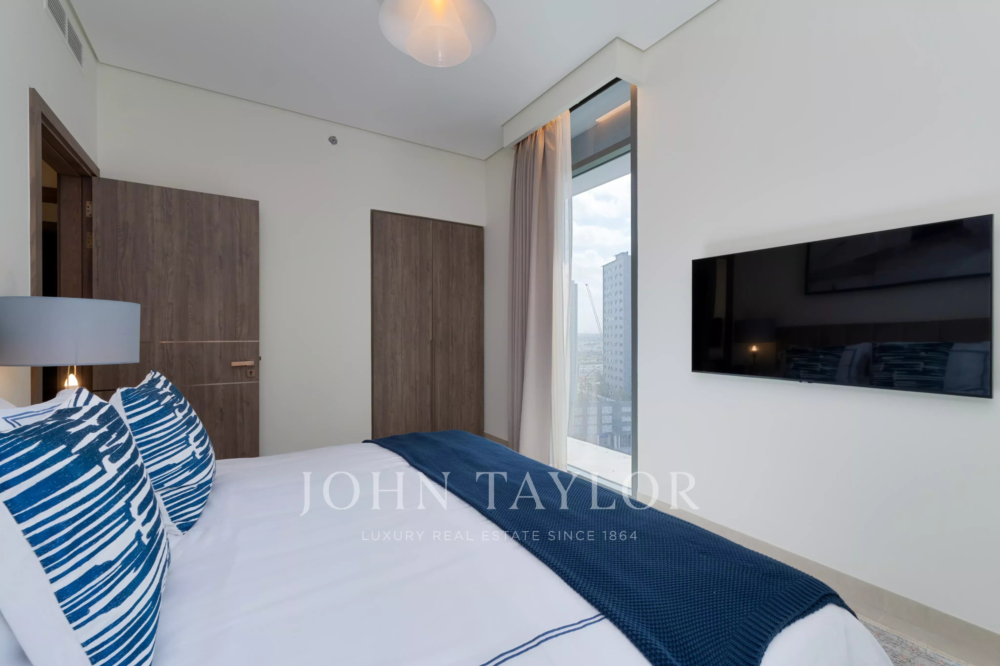 Experience luxury living in this spacious 1,152 sq ft apartment located in the heart of Business Bay, United Arab Emirates. The stylish residence features two roomy bedrooms, an open-concept living and dining area, and a modern kitchen. Enjoy breathtaking city views and plenty of natural light from the large sliding windows that open onto a private balcony, perfect for relaxing or entertaining.