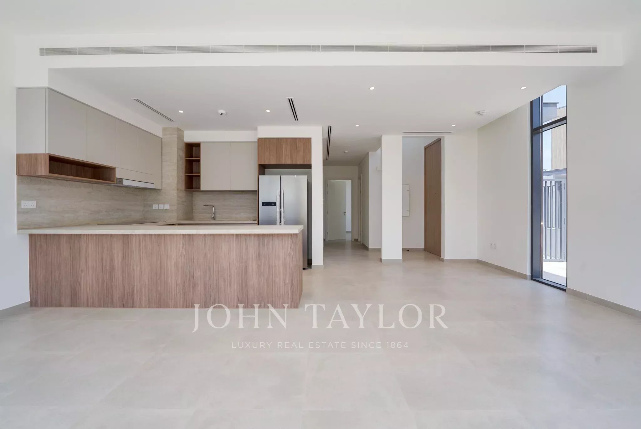 The ground floor features bright and open plan living and dining areas, complemented by a contemporary kitchen fitted with high-quality SMEG appliances. A maid’s room adds practicality, while the private garden creates the perfect setting for outdoor relaxation or entertaining.