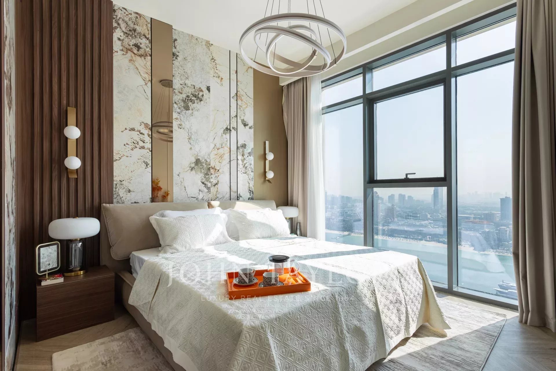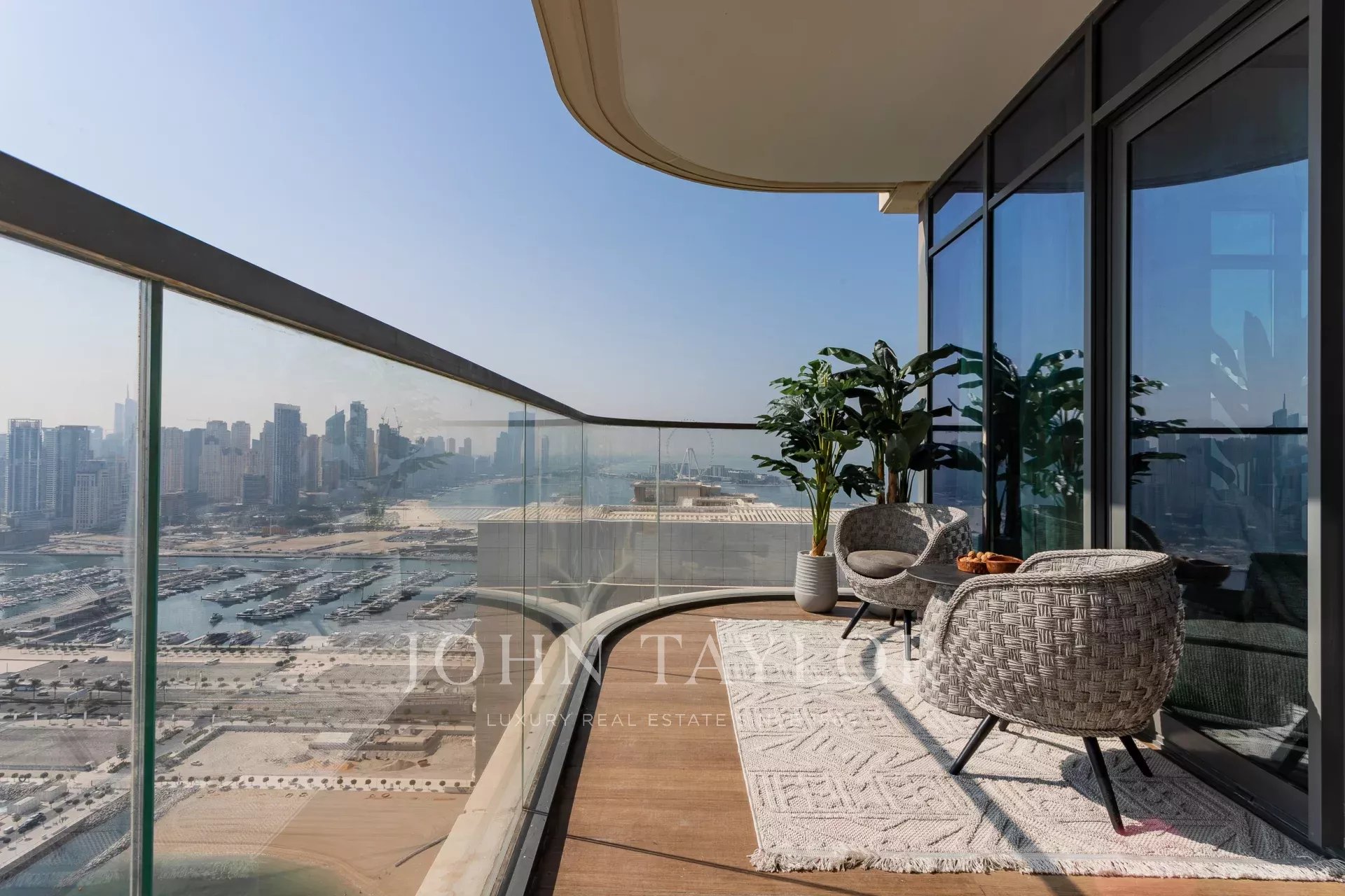 Discover luxury living at its finest with this brand-new, fully furnished 3-bedroom + maid apartment in the prestigious Marina Vista Tower 2. Nestled in the heart of Emaar Beachfront, this high-floor unit offers unparalleled views, modern design, and a lifestyle of pure elegance.