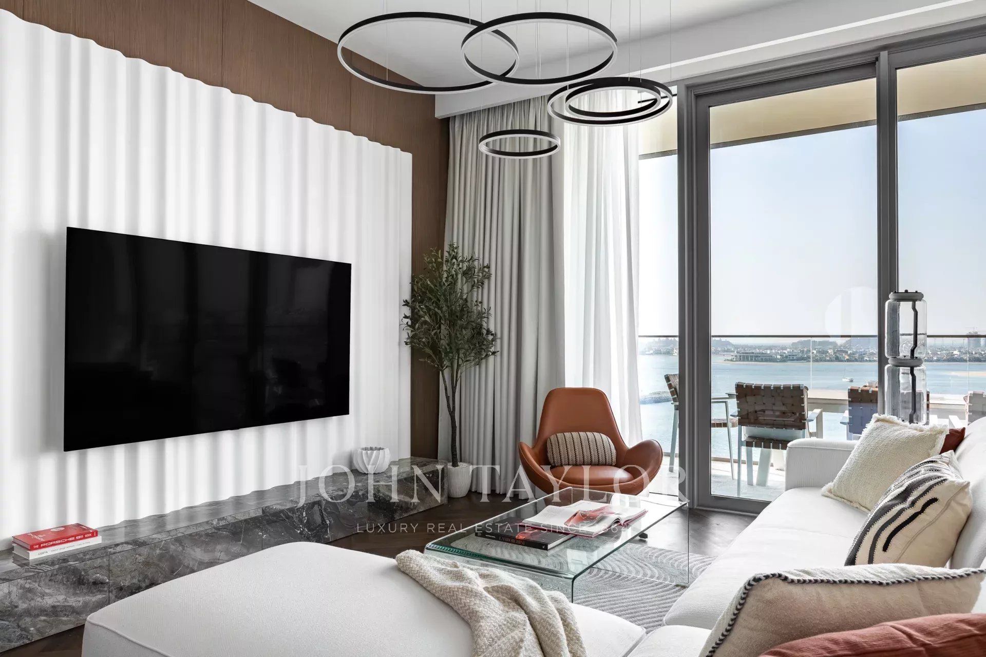 John Taylor Dubai proudly presents this stunning 3-bedroom apartment located in the prestigious Beach Isle at Emaar Beachfront. This fully furnished property is thoughtfully designed with high-end materials and contemporary aesthetics, offering a luxurious lifestyle paired with breathtaking Palm Jumeirah views. The apartment features a spacious layout, a large balcony, and is ready for you to move in with premium furniture, appliances, and decor included.