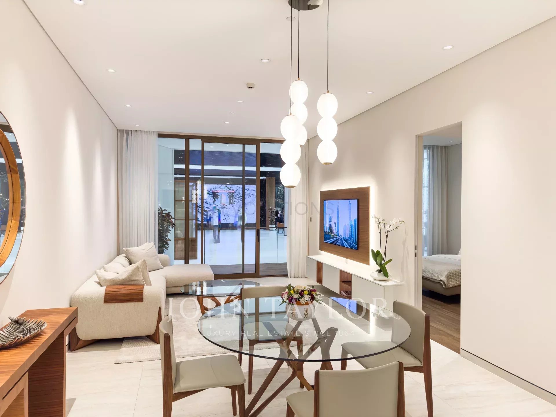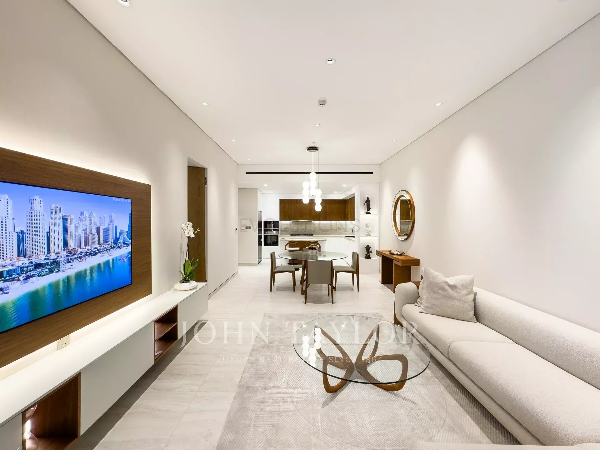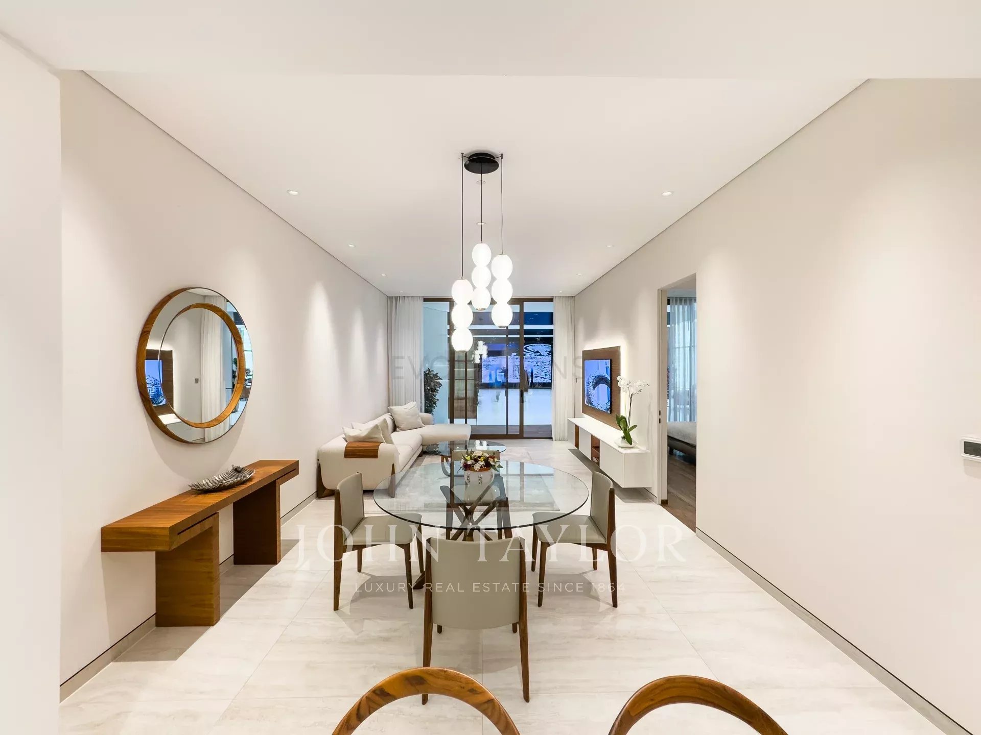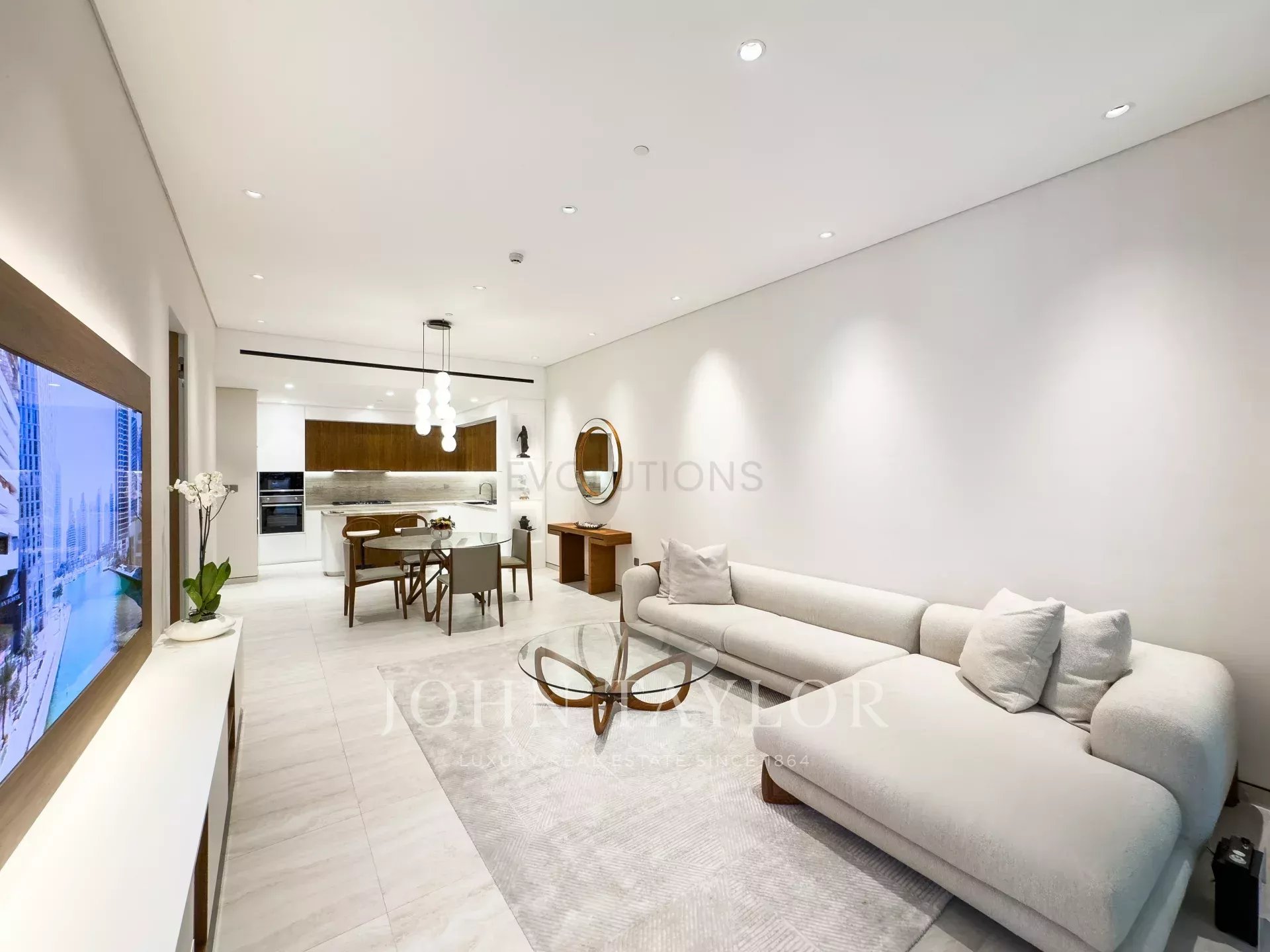 Open-Plan Living and Dining Area: An inviting, spacious living area designed for both relaxation and entertaining, offering direct access to a large balcony.