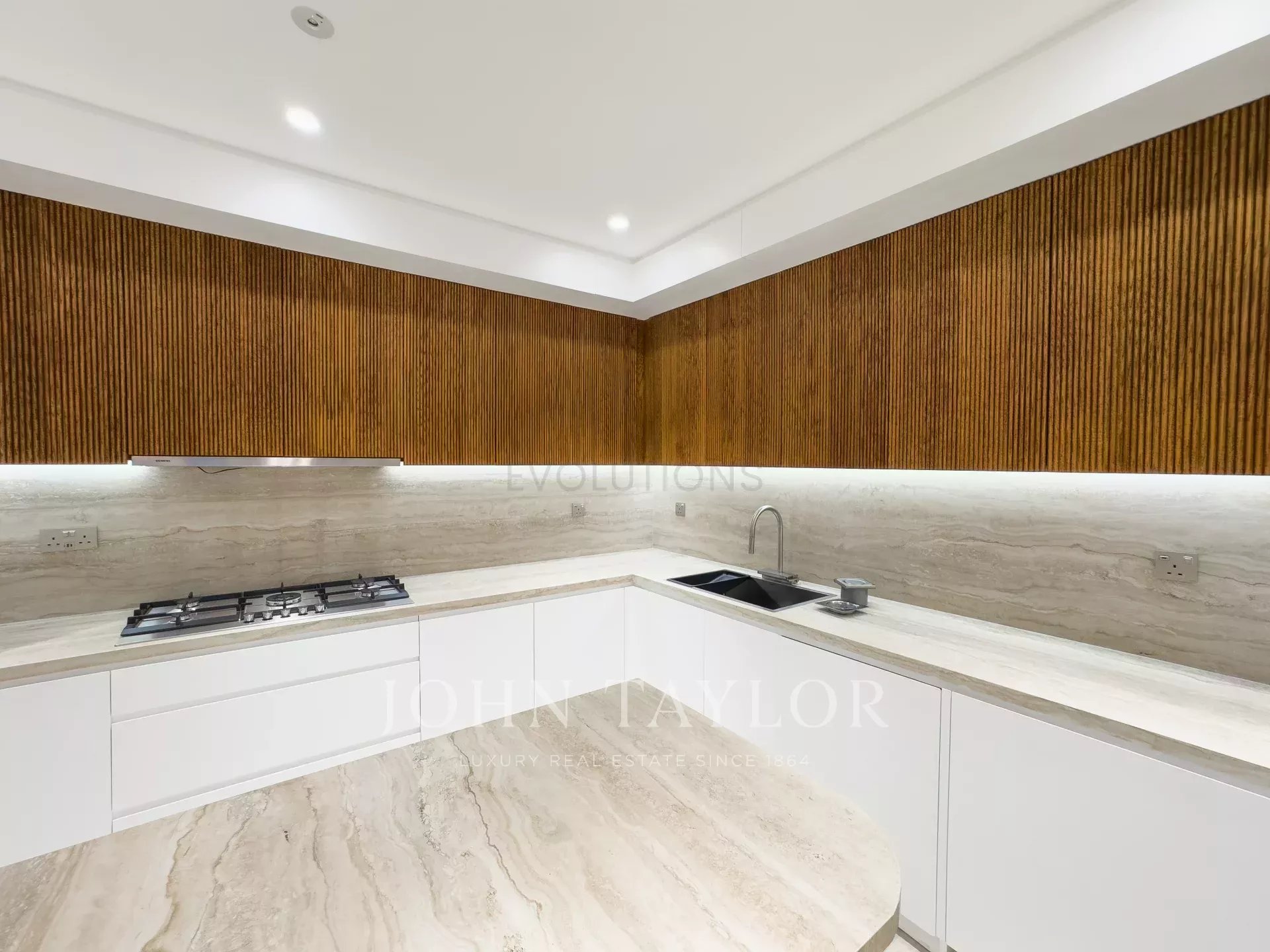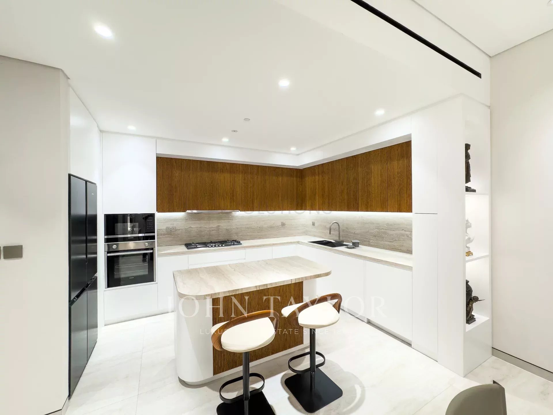 Modern Kitchen: Fully fitted, high-end kitchen with integrated appliances, offering ample counter space and storage for the home chef.