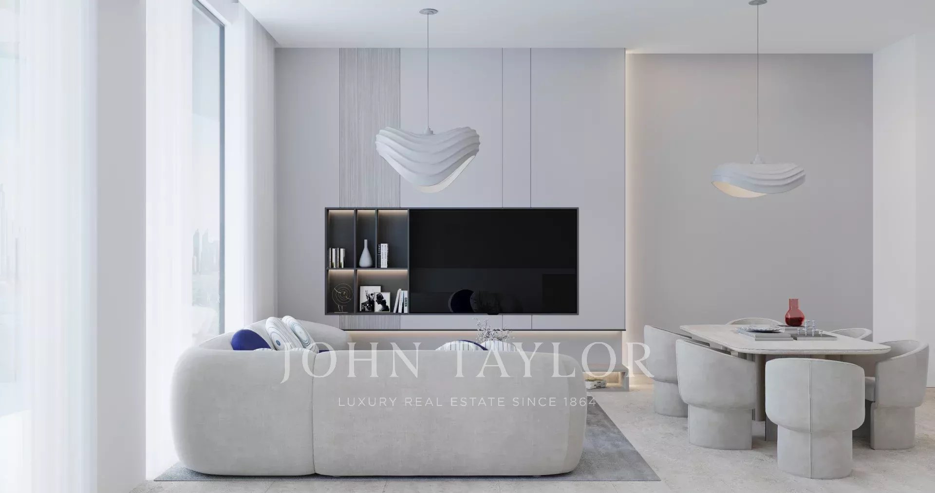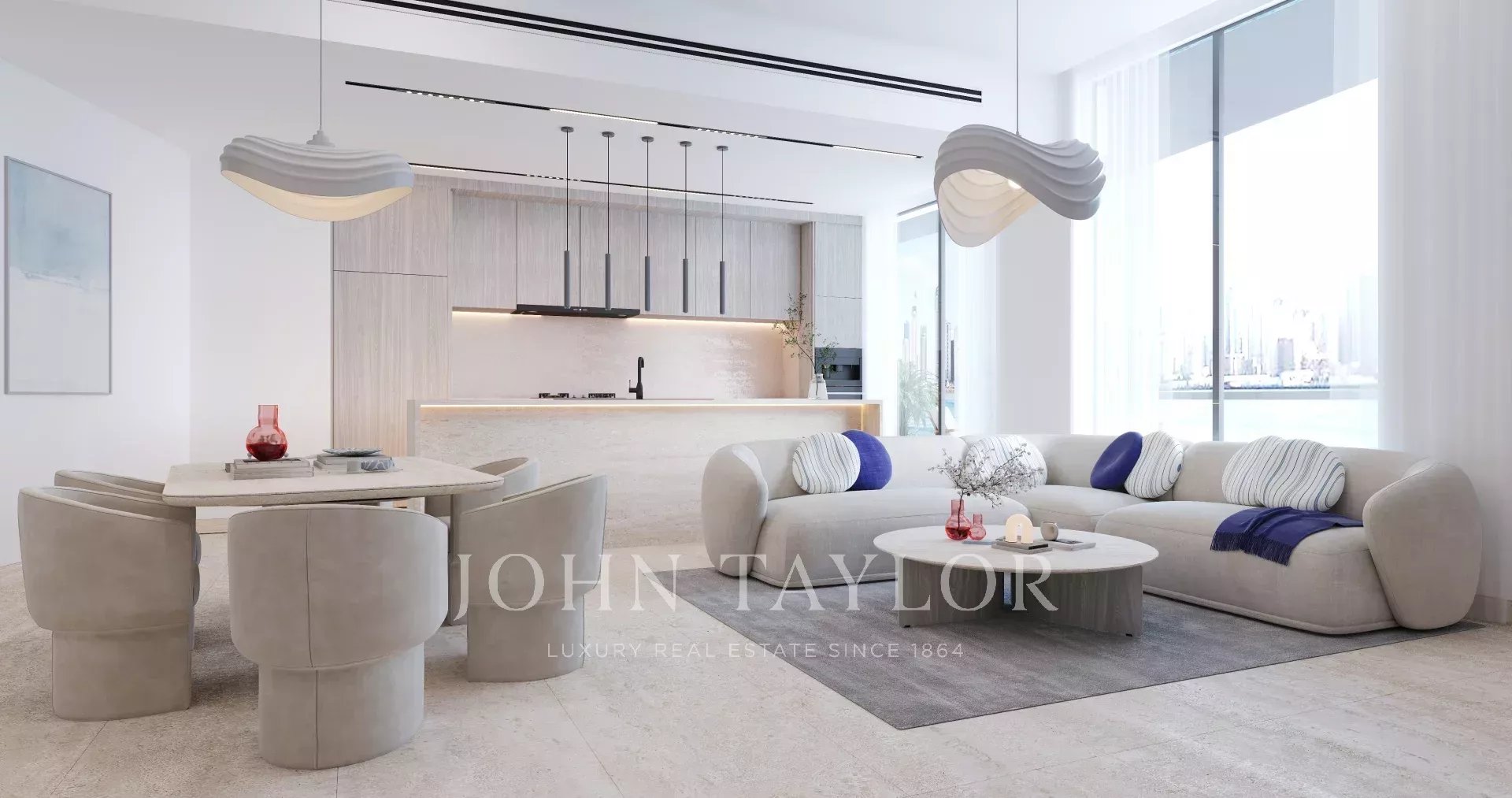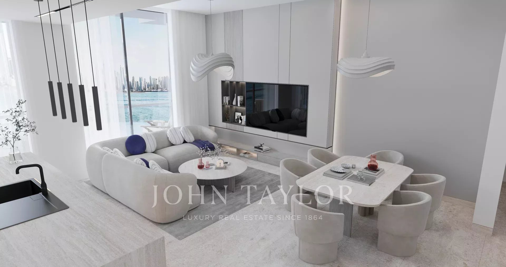 Open-Plan Living and Dining Area: The expansive, light-filled living area is perfect for both relaxation and entertaining, with a direct flow into the dining space and a large balcony.