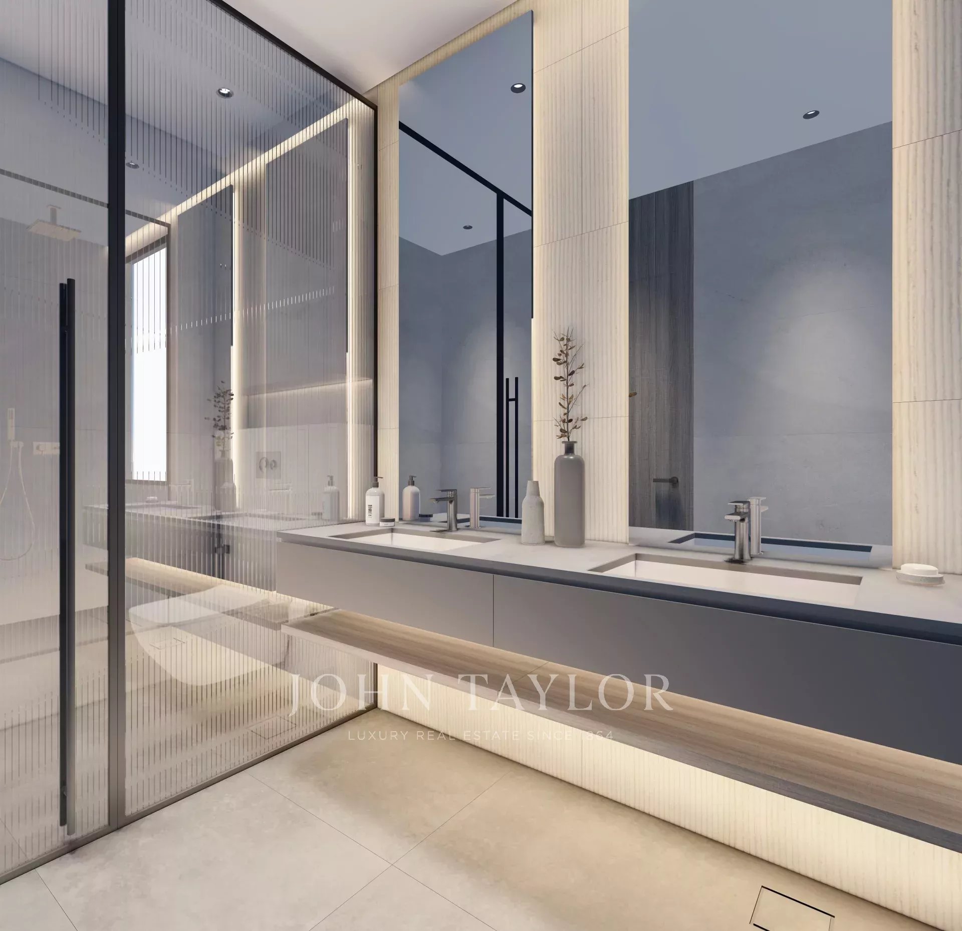 Elegant Bathrooms: High-quality fixtures and finishes create a sophisticated and relaxing atmosphere in both bathrooms.