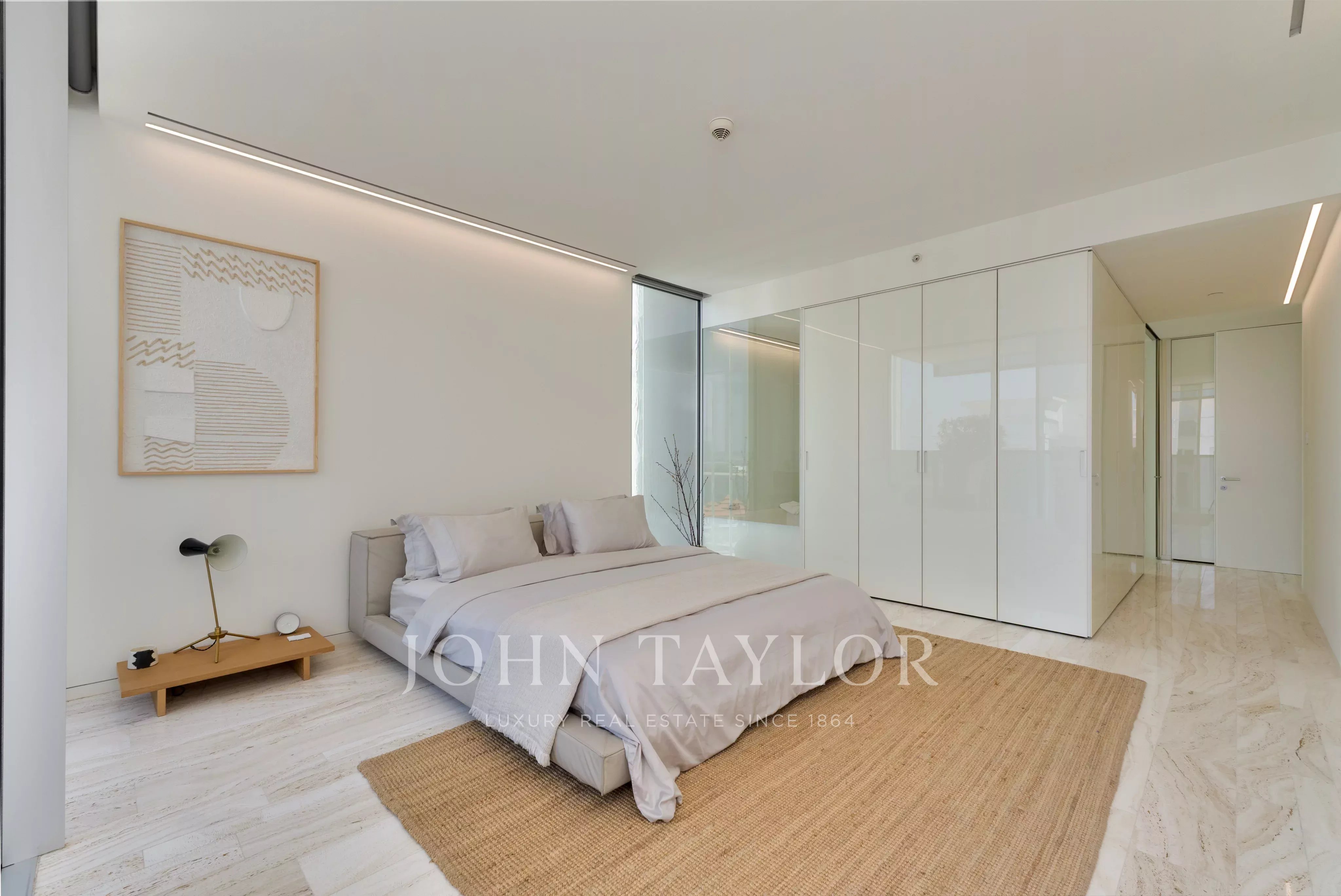 Unique design decisions within the space include ultra-slim sliding doors and windows that offer an easy transition between indoor and outdoor spaces. Calming fittings such as neutral marble and flooring are used to provide a blank canvas for those looking to move in. The unit offers 3 parking spaces.
