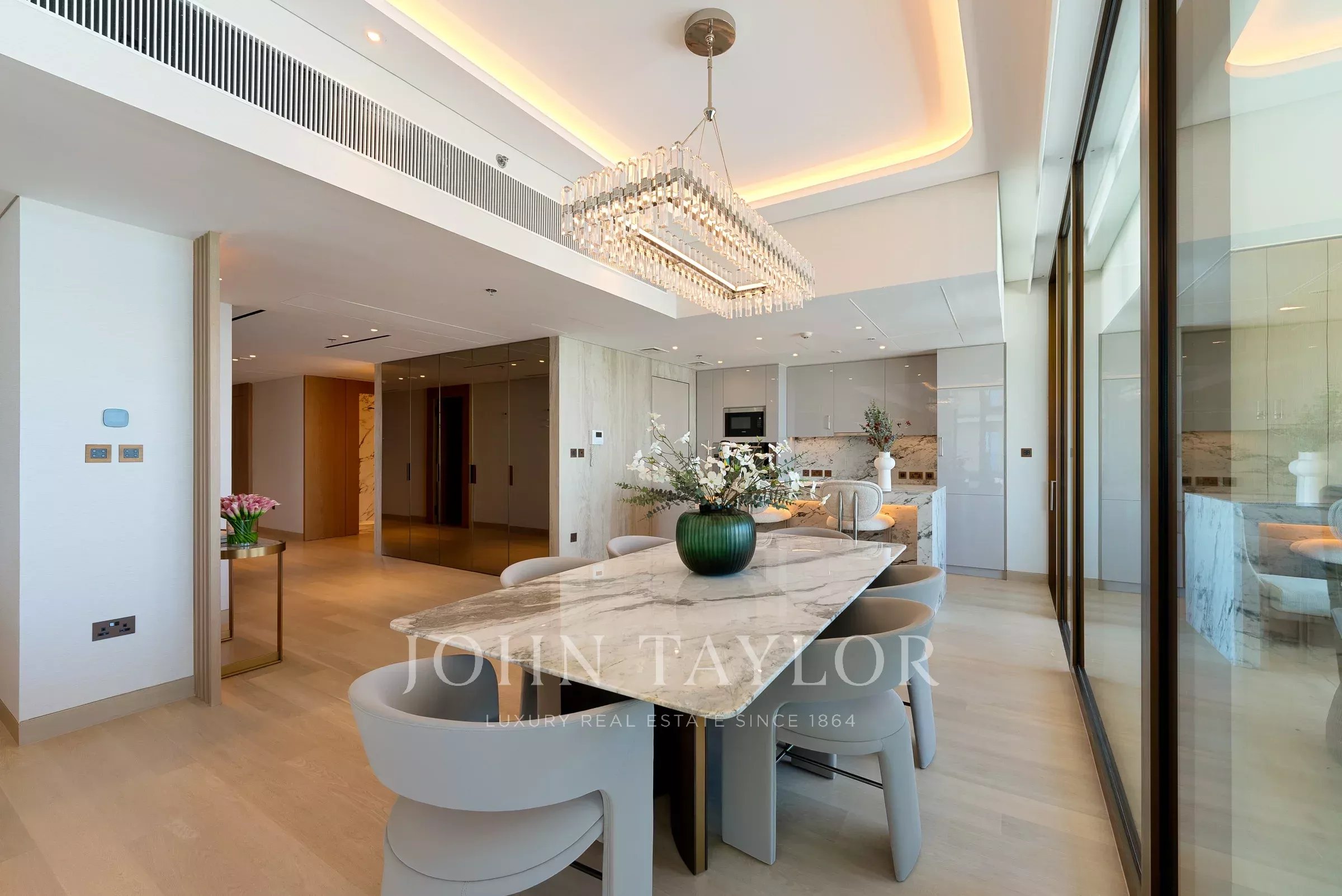 Possibly one of the best layouts for the 3-bedroom units, this residence unfolds from the entrance onto a foyer area which acts as a welcoming space. A discreet service entrance sits nearby, perfect for staff and allowing seamless integration into the living and dining space.