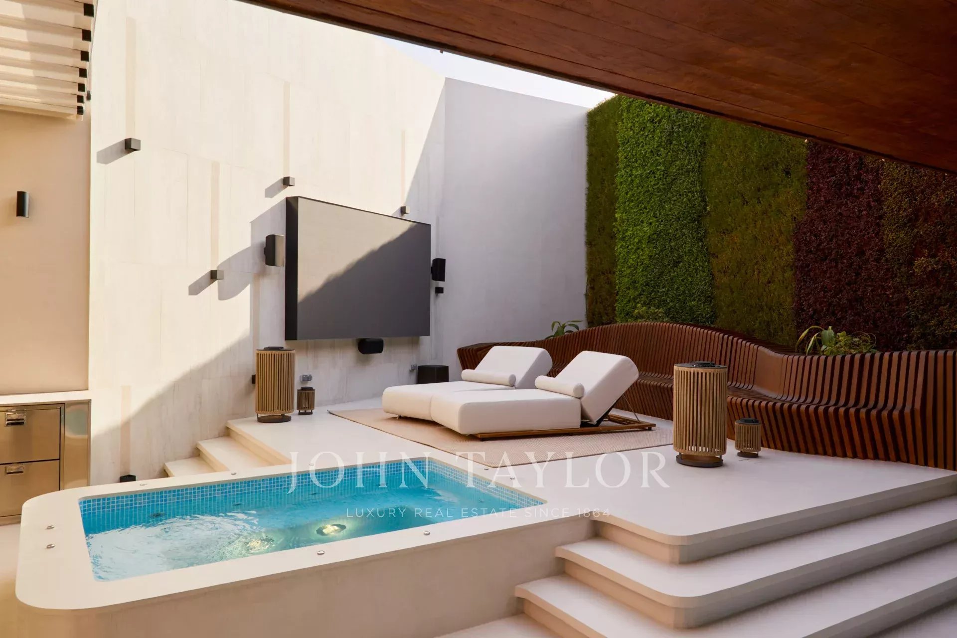 Private Terrace with Pool & Dining Area: Step onto your expansive terrace, featuring a private pool and outdoor dining area with spectacular Burj Khalifa views, perfect for relaxation and entertainment.