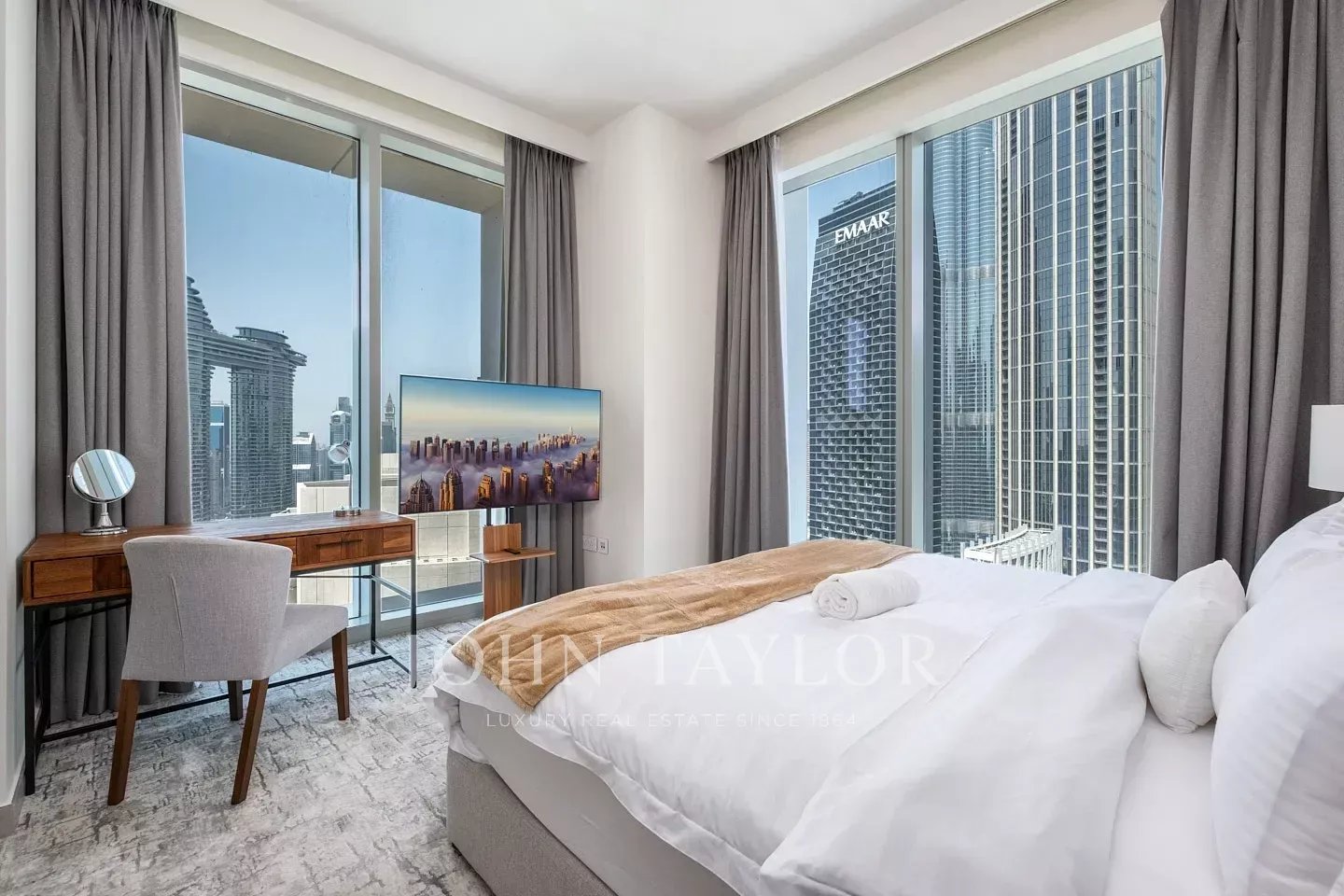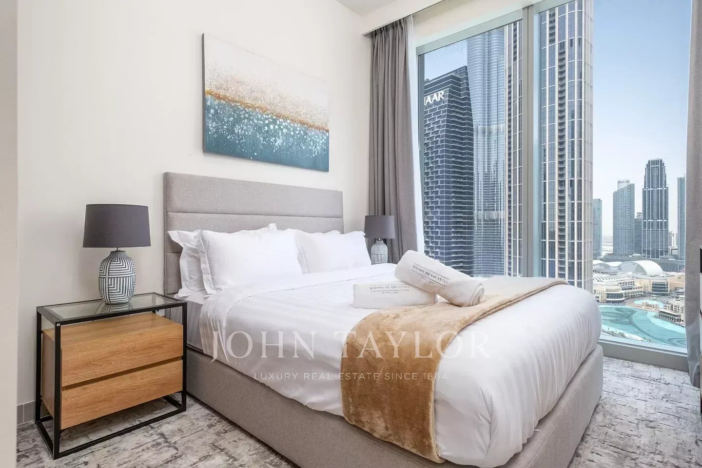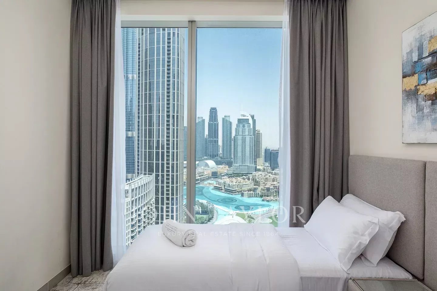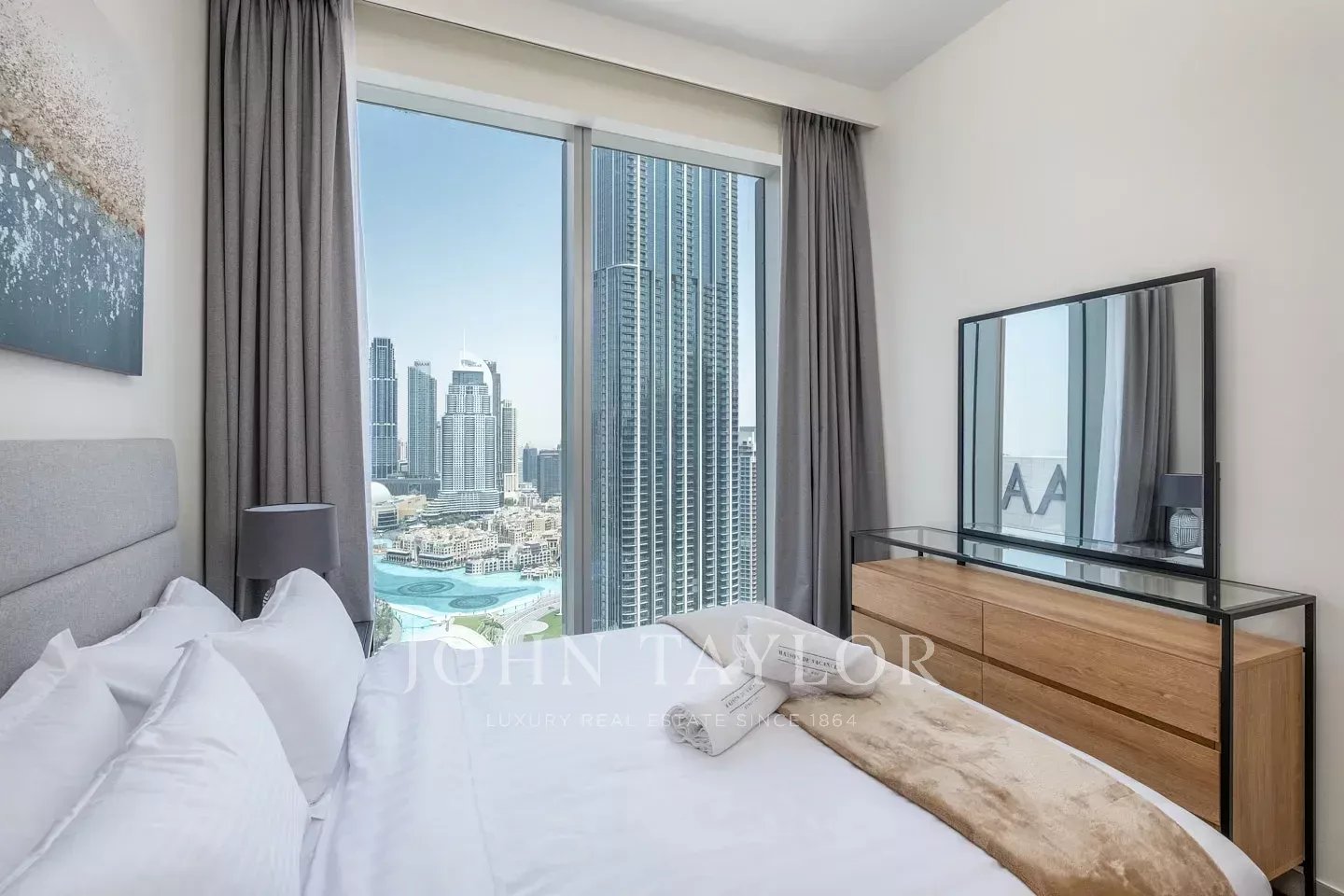 This fully furnished apartment is situated on a high floor. It hosts 3 bedrooms along with a maid’s room, with glorious views of Downtown Dubai. With a BUA of 1,568 sq ft, this home has 3 bedrooms, 3 bathrooms, a maid’s room and two allocated parking spots. The TourAs you enter the unit, you can see a well-appointed living and dining area that is open plan. Right off this area is a kitchen with breakfast bar. All the bedrooms have built-in wardrobes, beautiful soft furnishing in neutral accents, and plush bedding with tasteful artwork and carpets. The views from this unit are splendid, ranging from the fountain views to the Burj Khalifa. The home also has its own maid’s room. An ideal home for those looking to settle in Downtown Dubai with nothing more than their suitcases and a desire to enjoy city living.The AreaThe Forte buildings are designed by Nikken Sekkei and host a sleek architecture. It forms part of the Opera District in Downtown Dubai and is located close to the Dubai fountains, Dubai Mall and Souk Al Bahar. At the podium level, there are several restaurants and shops. Its position on the Mohammed bin Rashid Boulevard provides easy pedestrian access to various cafes, restaurants, playschools, studios, supermarkets and more. Downtown Dubai is one of the city’s most vibrant and iconic districts, serving as a central hub for luxury living and tourism. It is home to world-renowned landmarks such as the Burj Khalifa, Dubai Mall, and the spectacular Dubai Fountain, known for its captivating water shows. The area also boasts high-end restaurants, stylish cafes, premium residences, and a lively atmosphere, making it a sought-after destination for both residents and visitors alike. Why we like itSituated on a high-floor with views of the Dubai Fountain and Burj KhalifaWalking distance to Dubai MallSituated in the exclusive Opera District Details & Amenities:Swimming poolGymChildren’s play areaLandscaped gardensBarbecue areaMultipurpose room24-hour securityConcierge serviceCovered parkingHigh-speed elevatorsRetail areaSmart home technologyLaundry serviceResident’s loungeJacuzziSteam roomPackage room