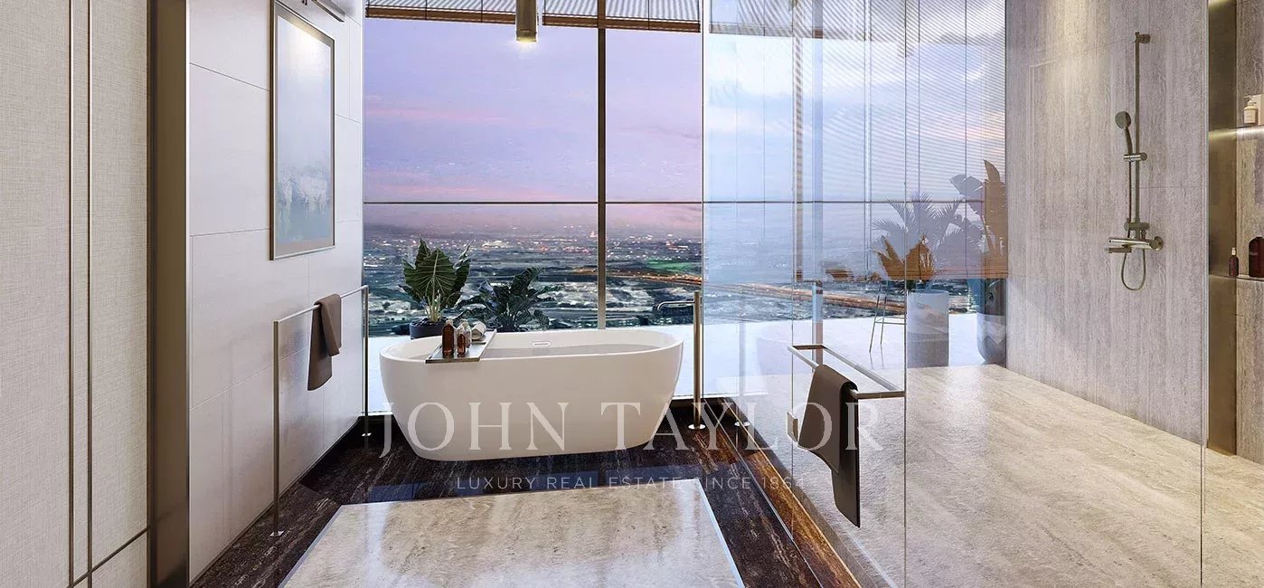 Every corner of this home is made with premium materials in mind, offering a sense of sophistication and calm despite being located in a bustling part of the city. High-quality materials are used to play with levels of abstraction and ensure a long-lasting elevated sense of living. 4.2m ceilings ensure that you never miss the sweeping views – from sunrise to sunset – while a massive outdoor terrace takes full advantage of this. From sunrise to sunset, the terrace frames iconic landmarks and the ever-evolving Downtown skyline, creating a setting designed for both private repose and grand entertaining.