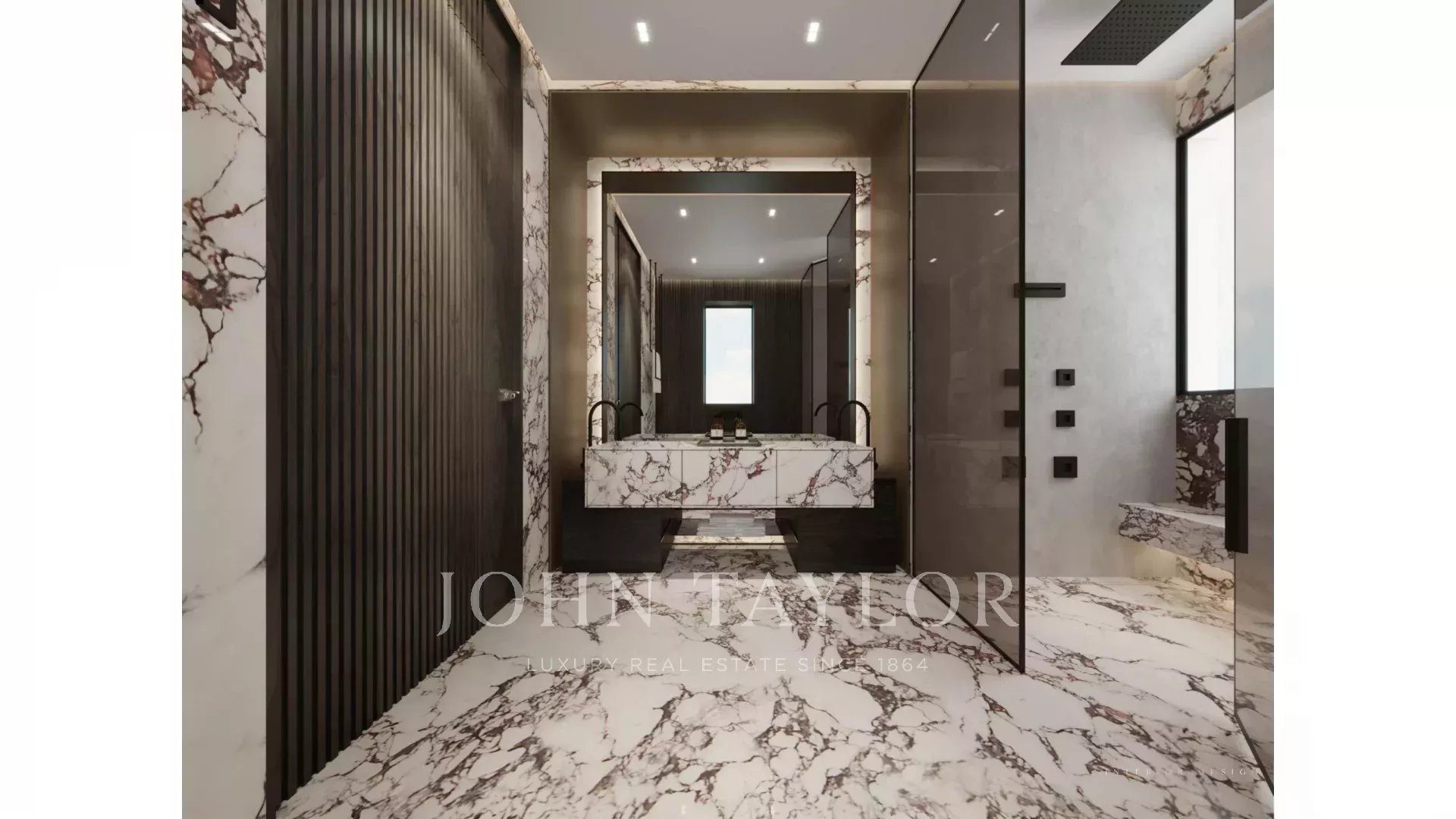 * Luxury Bathrooms with marble-effect vanities, LED-lit mirrors, and bespoke walnut doors.