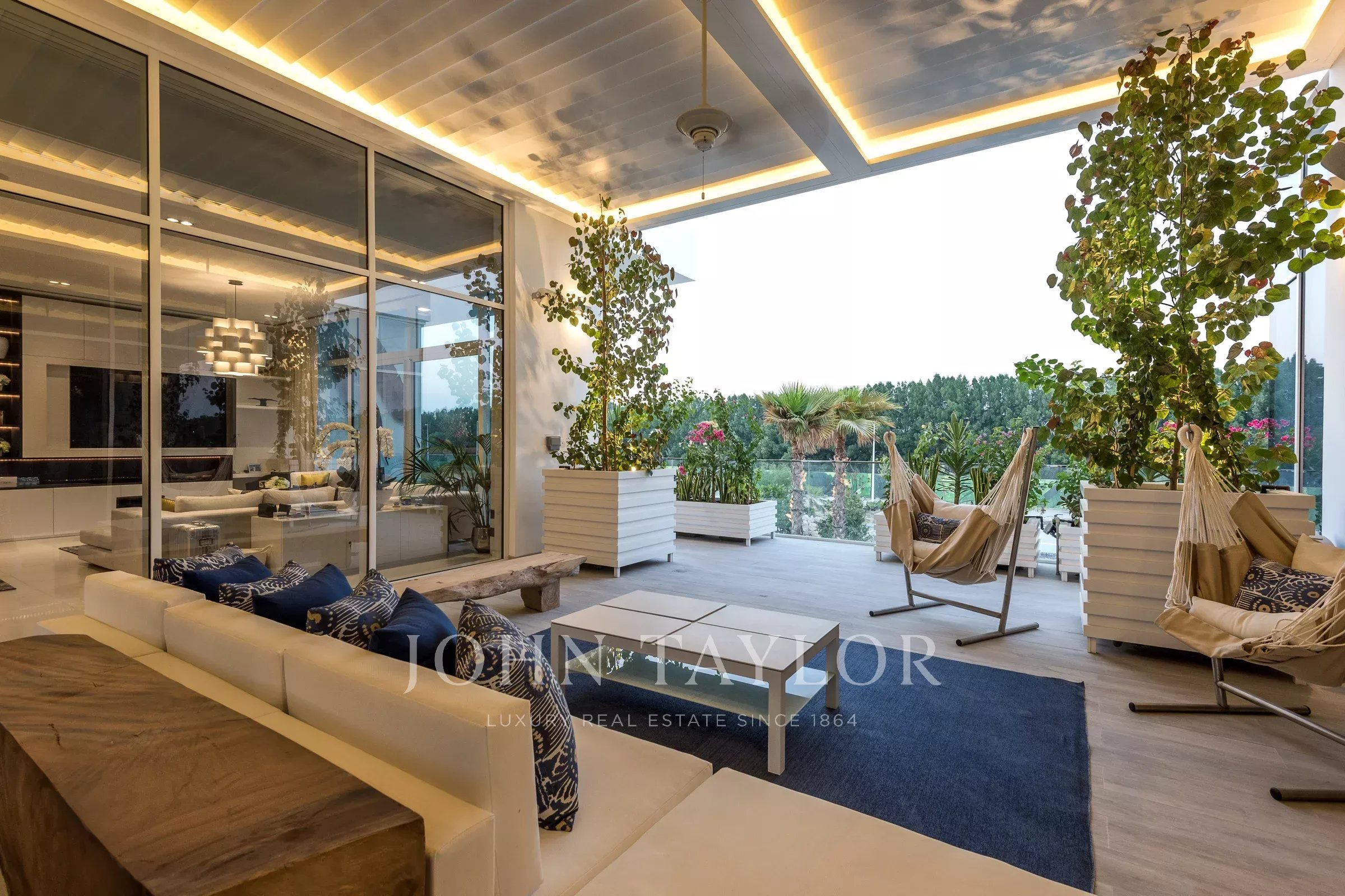 Outdoors lies a private 9x4m swimming pool, loungers, an outdoor shower, table tennis area, dining area, sunken seating, and landscaped garden. The home also hosts a maid’s room and driver’s room.