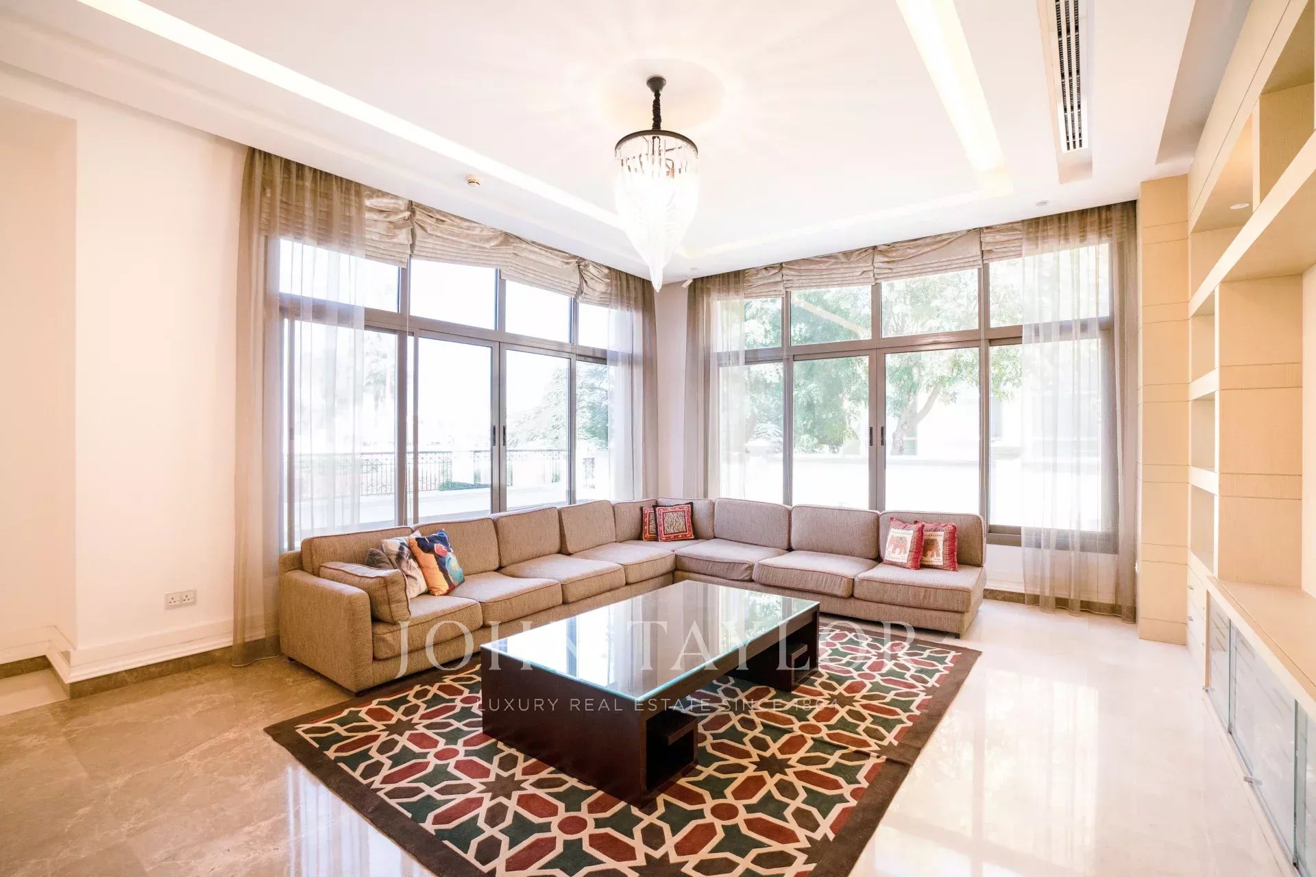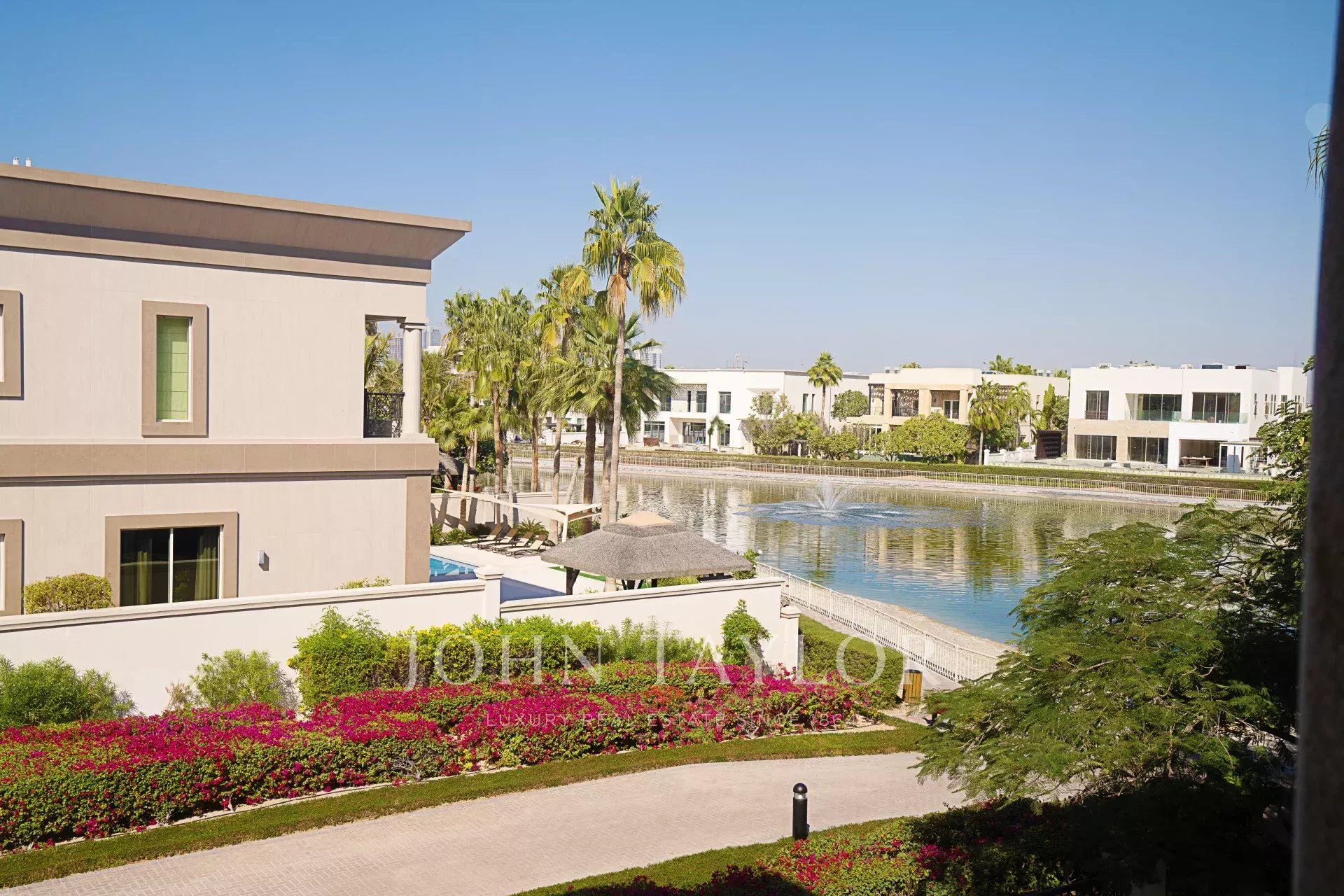 Located in Emirates Hills, Dubai's most exclusive gated community, this villa enjoys a prime location with serene lake views, while being minutes away from world-class amenities, golf courses, and vibrant city life.