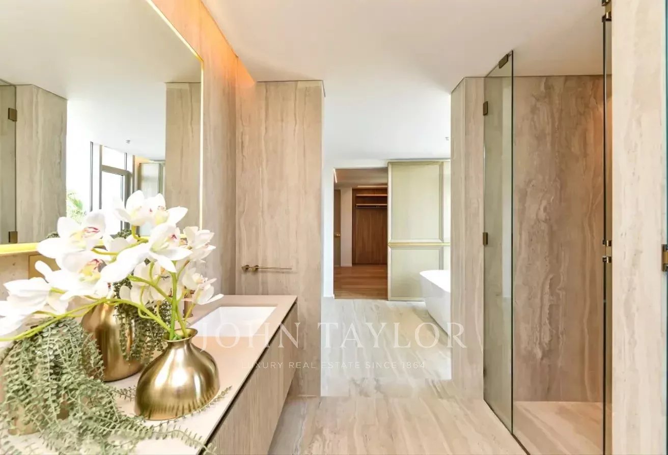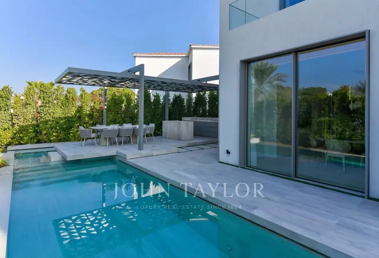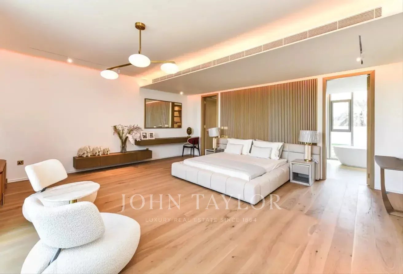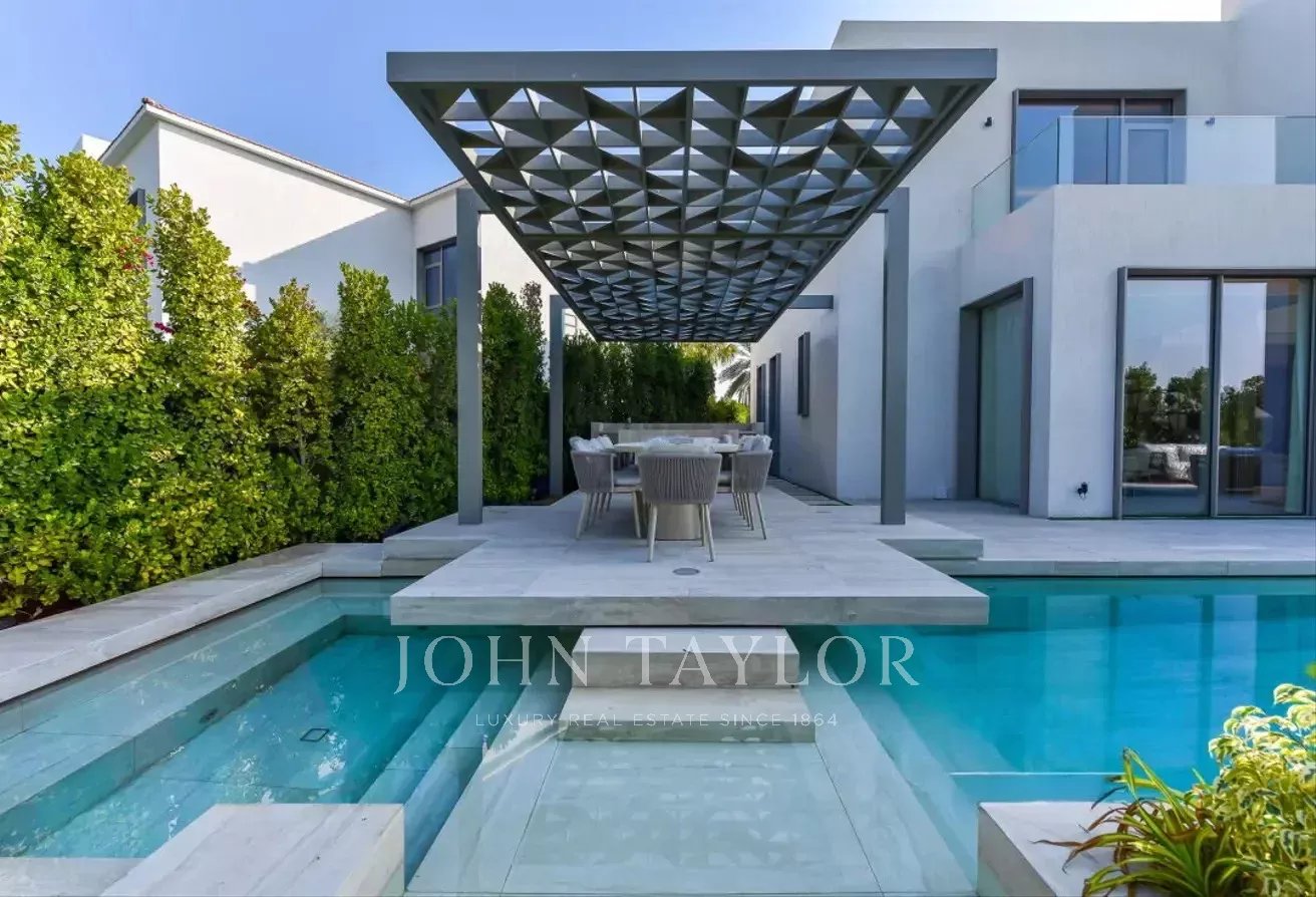 John Taylor Dubai is delighted to introduce this exceptional custom-designed villa, perfectly positioned in the prestigious Jumeirah Islands community. Showcasing a sleek contemporary design with premium finishes, this smart home offers an unparalleled living experience.