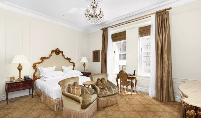 Rose Suite 1329 at the iconic Plaza Hotel has a spacious sitting room with a wet bar, ...