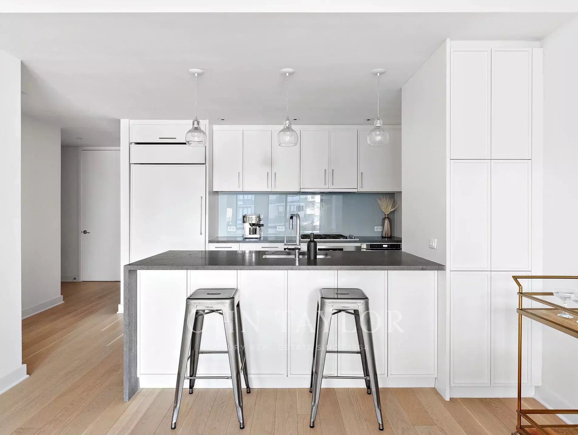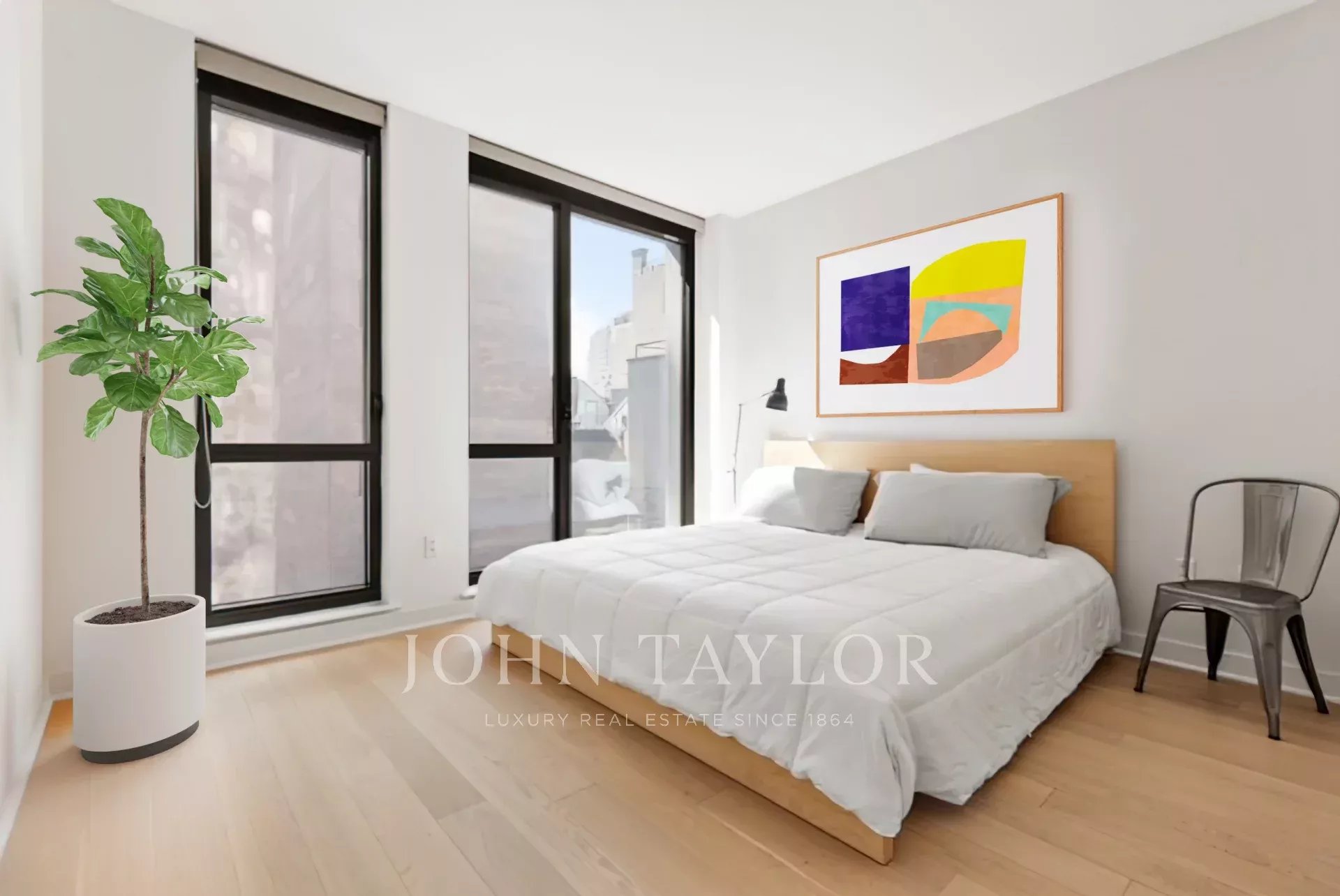 This spacious home features Northern and Southern exposures, 5" white oak wood floors, and floor-to-ceiling windows throughout.