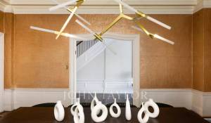 Enter into the elegant gallery/foyer with 10’9" high ceilings and arched doorways featuring original woodwork. The spacious living room directly facing Central Park is flooded with natural light through expansive windows, providing a serene view of the park’s tree-lined pathways. The adjacent formal dining room has its original octagonal plaster coffered ceilings and leaded glass windows. It also boasts intricate original wainscoting and hardware detailing, as well as beautiful inlaid oak floors.
