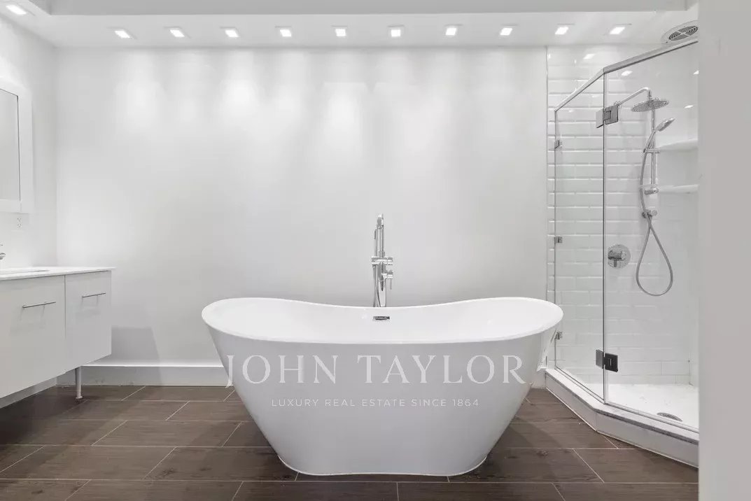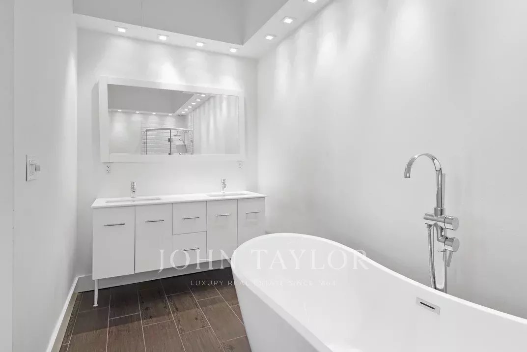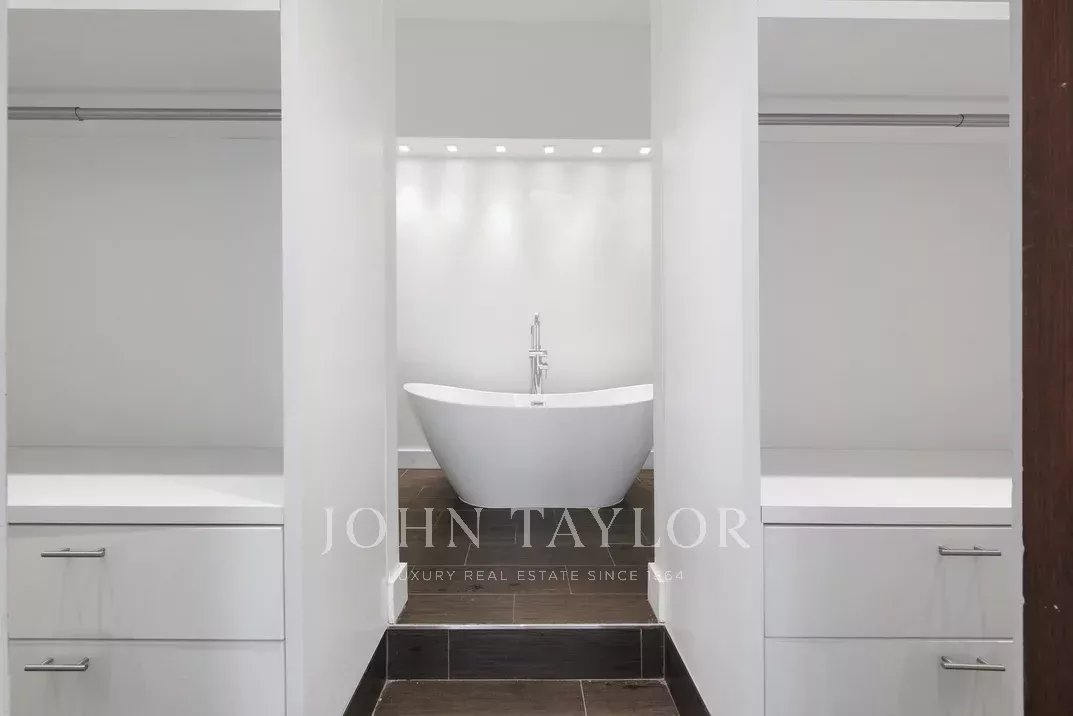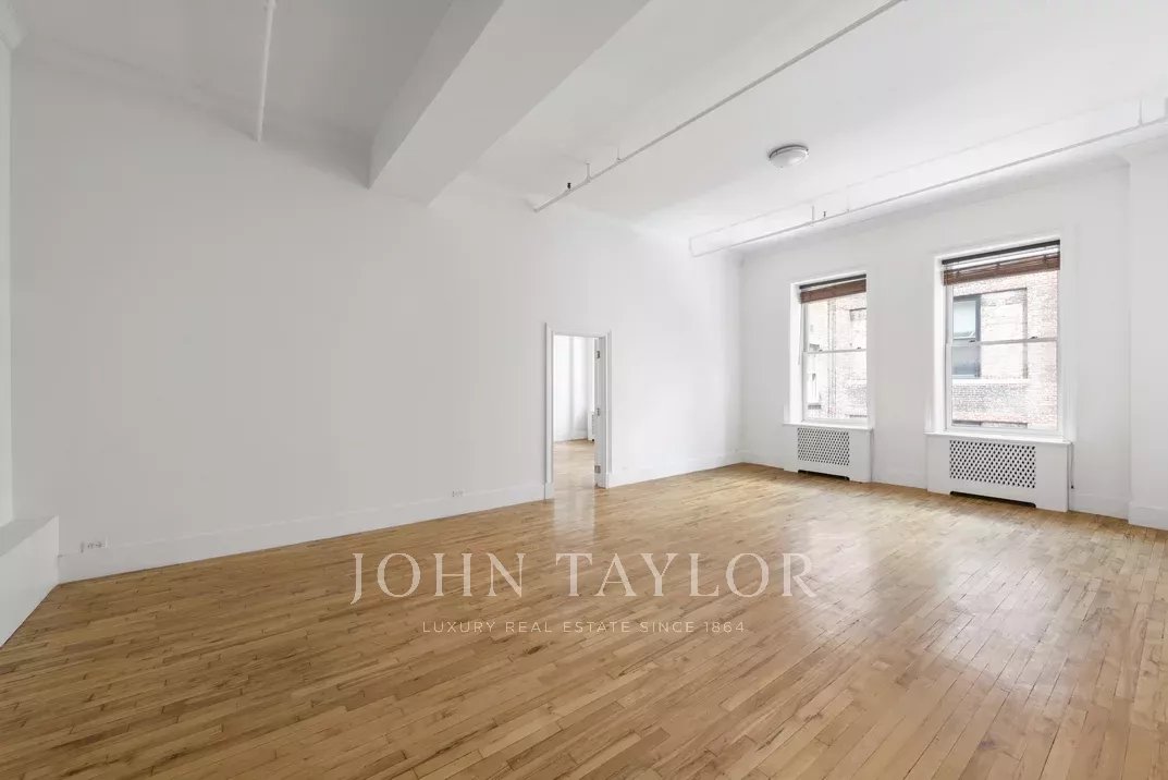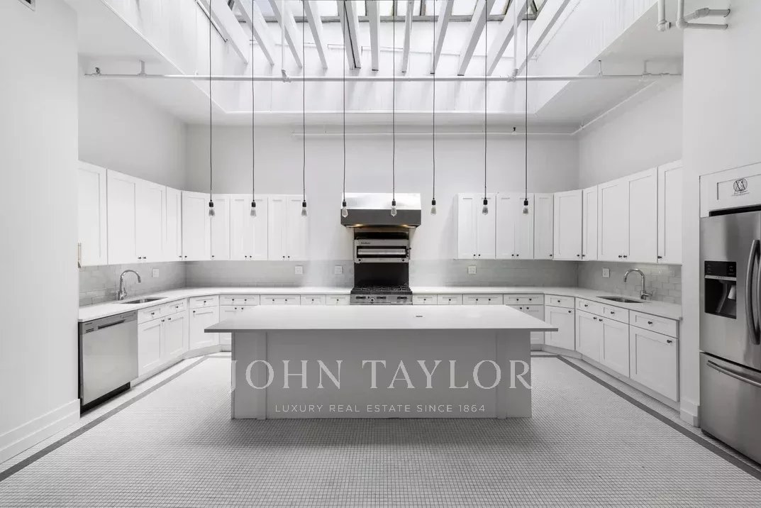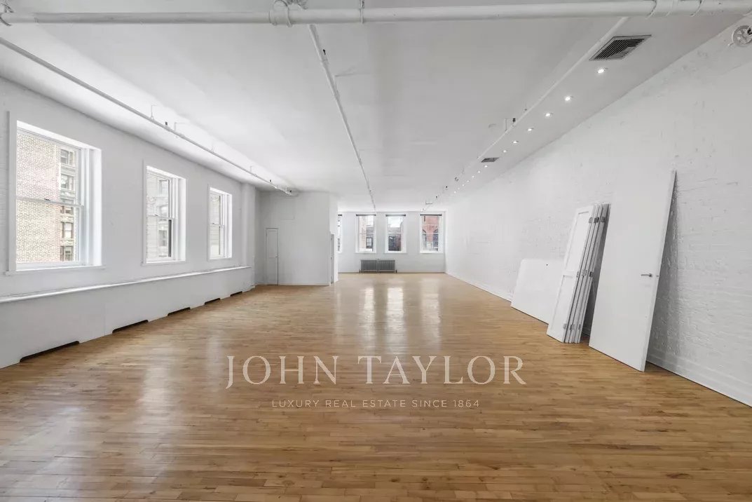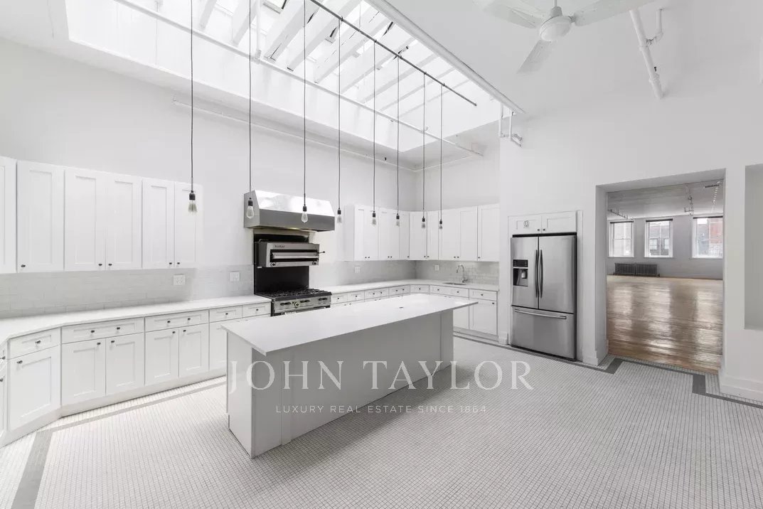 This massive 4,200+ SF loft features a very large 4000 SF EXCLUSIVE ROOF and has two bedrooms that could easily be converted to a three or four, with two and a half new marble bathrooms. The building is a grand pre-war loft building in the heart of Soho (Broadway & Spring Street) with only 6 floor, one apartment per floor. The unit has 13 FT ceilings, exceptional large eat in gourmet kitchen with skylight, clean and elegant design, open city views, pin-drop quiet and endless possibilities in prime Soho location. Includes a large wine cellar off of the eat-in kitchen, a keyed elevator building, washer and dryer, and a storage room.