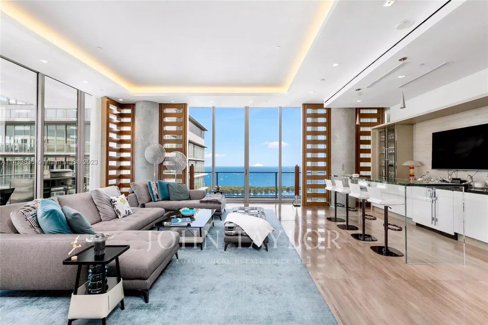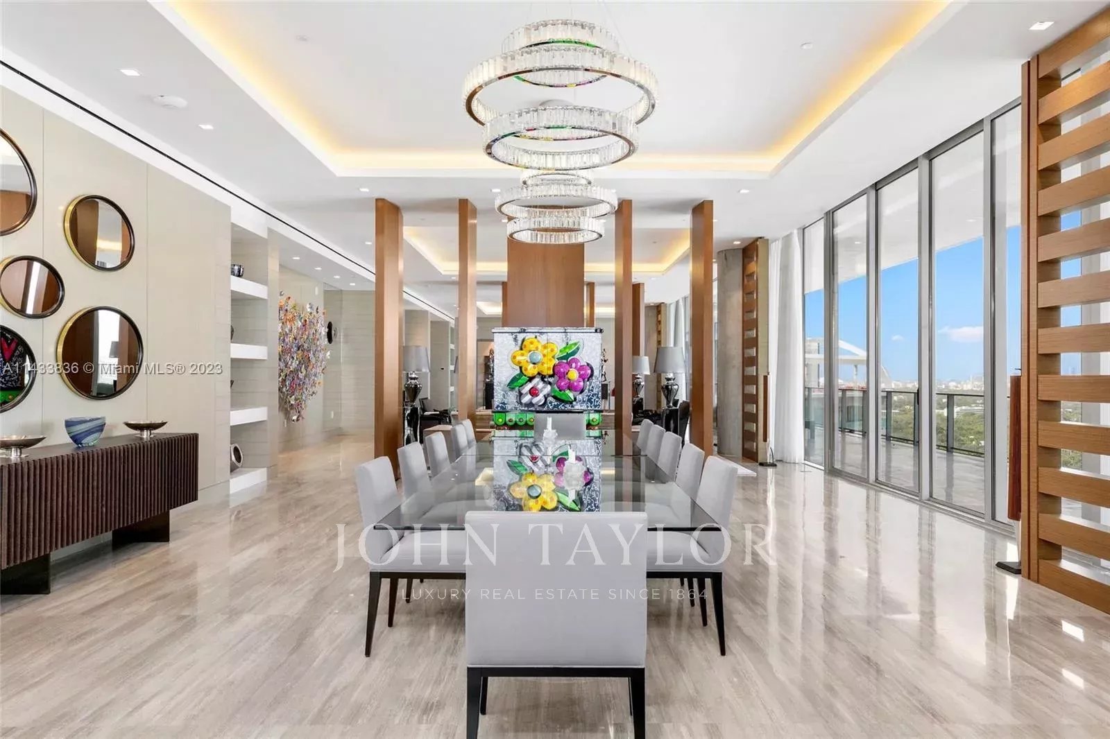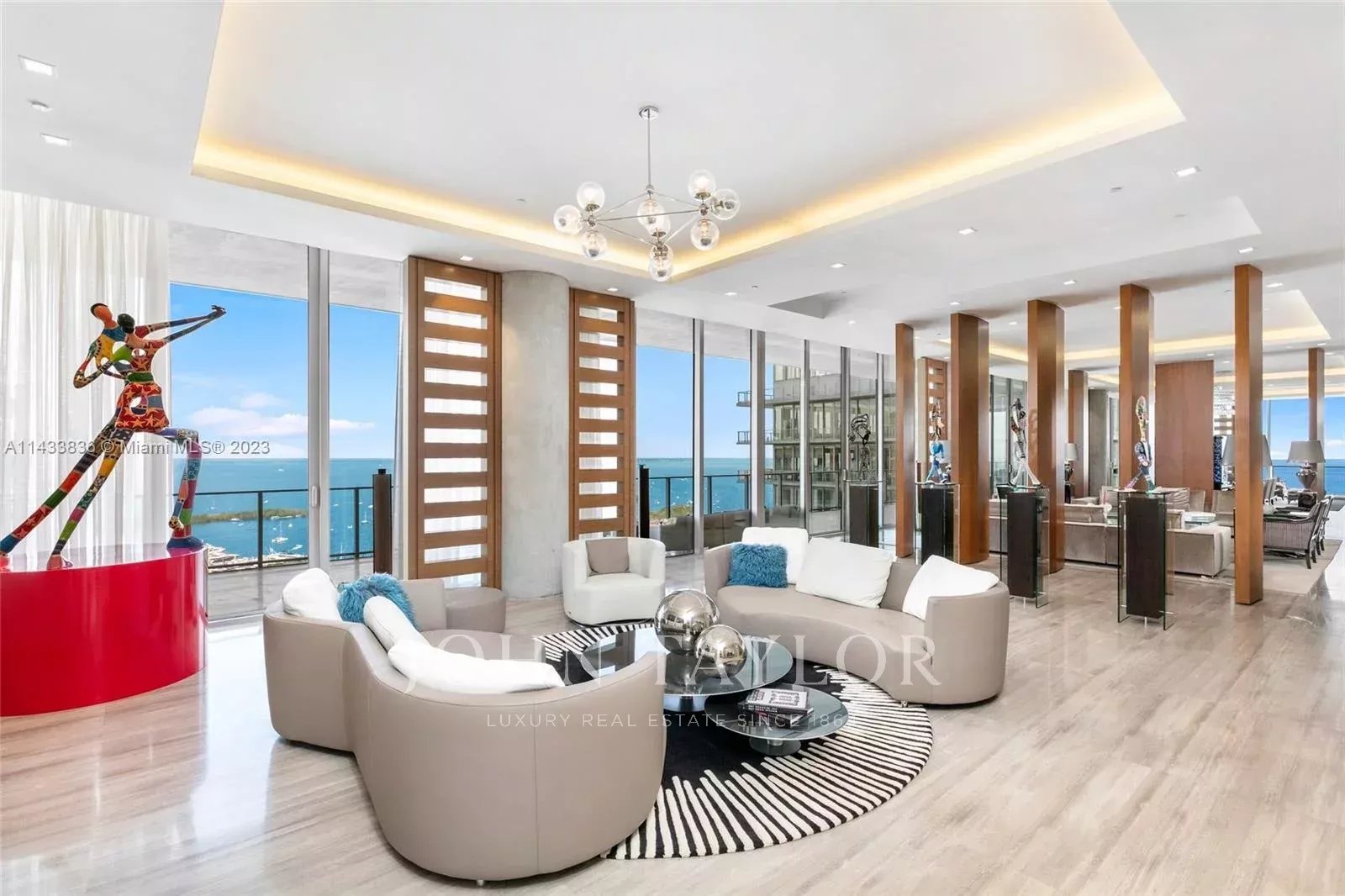 Discover miami's grandest single-floor condo in miami, spanning 11,000 sq. Ft with 12' ceilings. This penthouse, designed by nick luaces, showcases 6 beds, 6 baths, 2 powder rooms, a theater, library, office, and distinct seating zones. Boasting bang & olufsen home automation, the 3,000 sq. Ft master suite stuns with a chic dressing area, midnight kitchen, gym, sauna, and terraces accessible from public spaces. Move-in ready and fully furnished with remarkable artwork, this home includes access to a 4-car private garage with storage. Enjoy bay views from the unique wrap-around terrace, private elevator foyer, and deluxe kitchen. This masterpiece resides in grove at grand bay by architect bjarke engels. Experience an unparalleled lifestyle living in the heart of the grove!