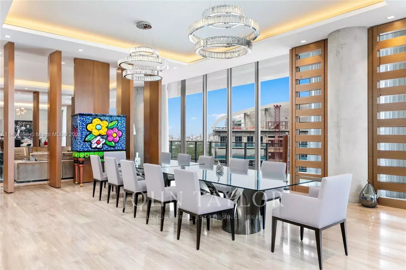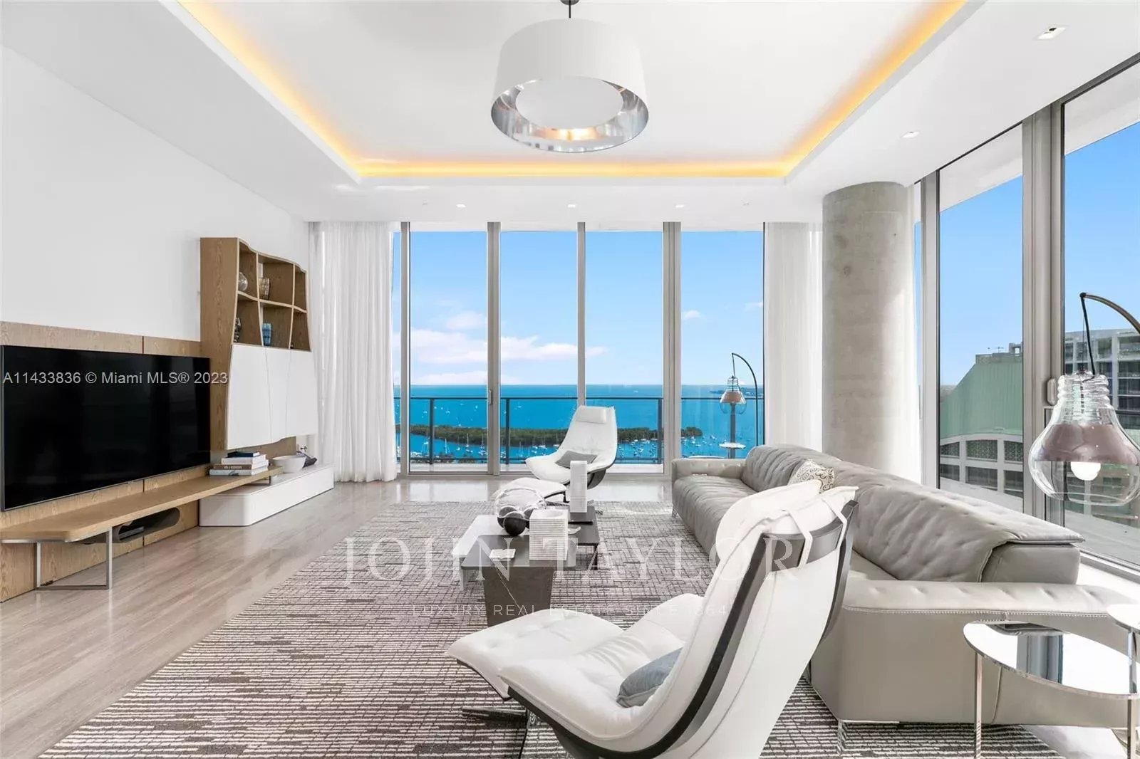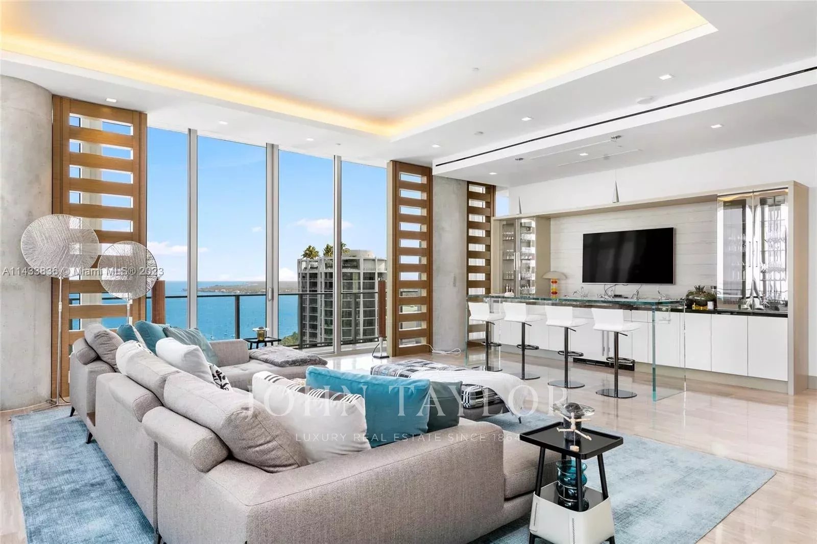 Discover miami's grandest single-floor condo in miami, spanning 11,000 sq. Ft with 12' ceilings. This penthouse, designed by nick luaces, showcases 6 beds, 6 baths, 2 powder rooms, a theater, library, office, and distinct seating zones. Boasting bang & olufsen home automation, the 3,000 sq. Ft master suite stuns with a chic dressing area, midnight kitchen, gym, sauna, and terraces accessible from public spaces. Move-in ready and fully furnished with remarkable artwork, this home includes access to a 4-car private garage with storage. Enjoy bay views from the unique wrap-around terrace, private elevator foyer, and deluxe kitchen. This masterpiece resides in grove at grand bay by architect bjarke engels. Experience an unparalleled lifestyle living in the heart of the grove!