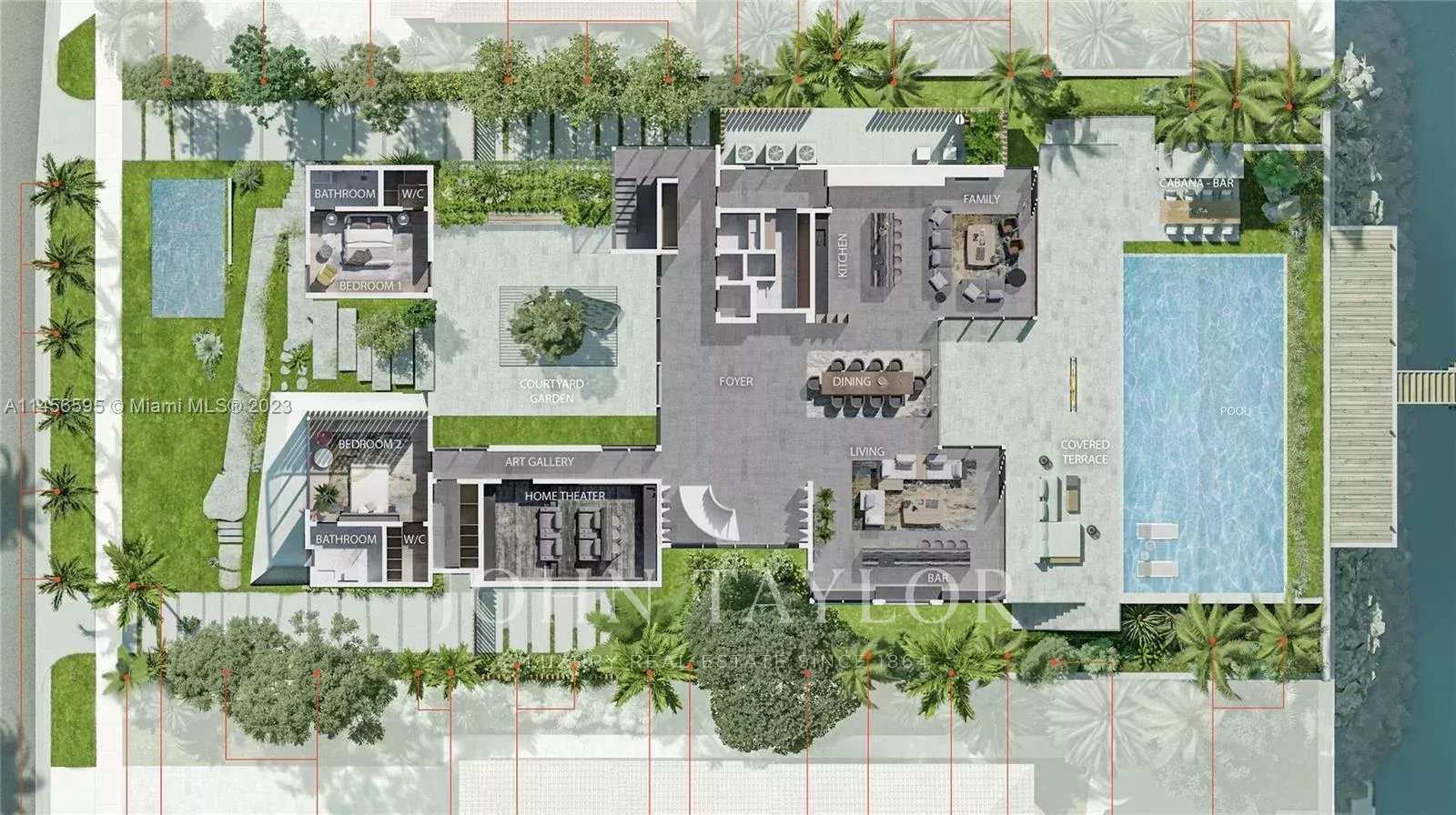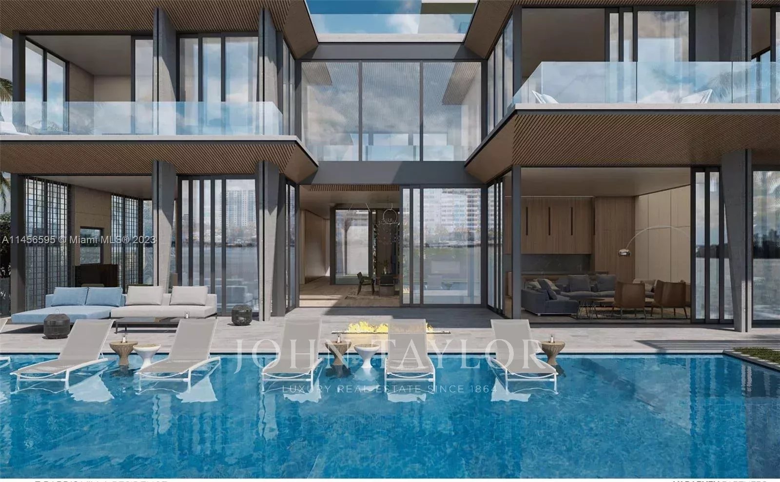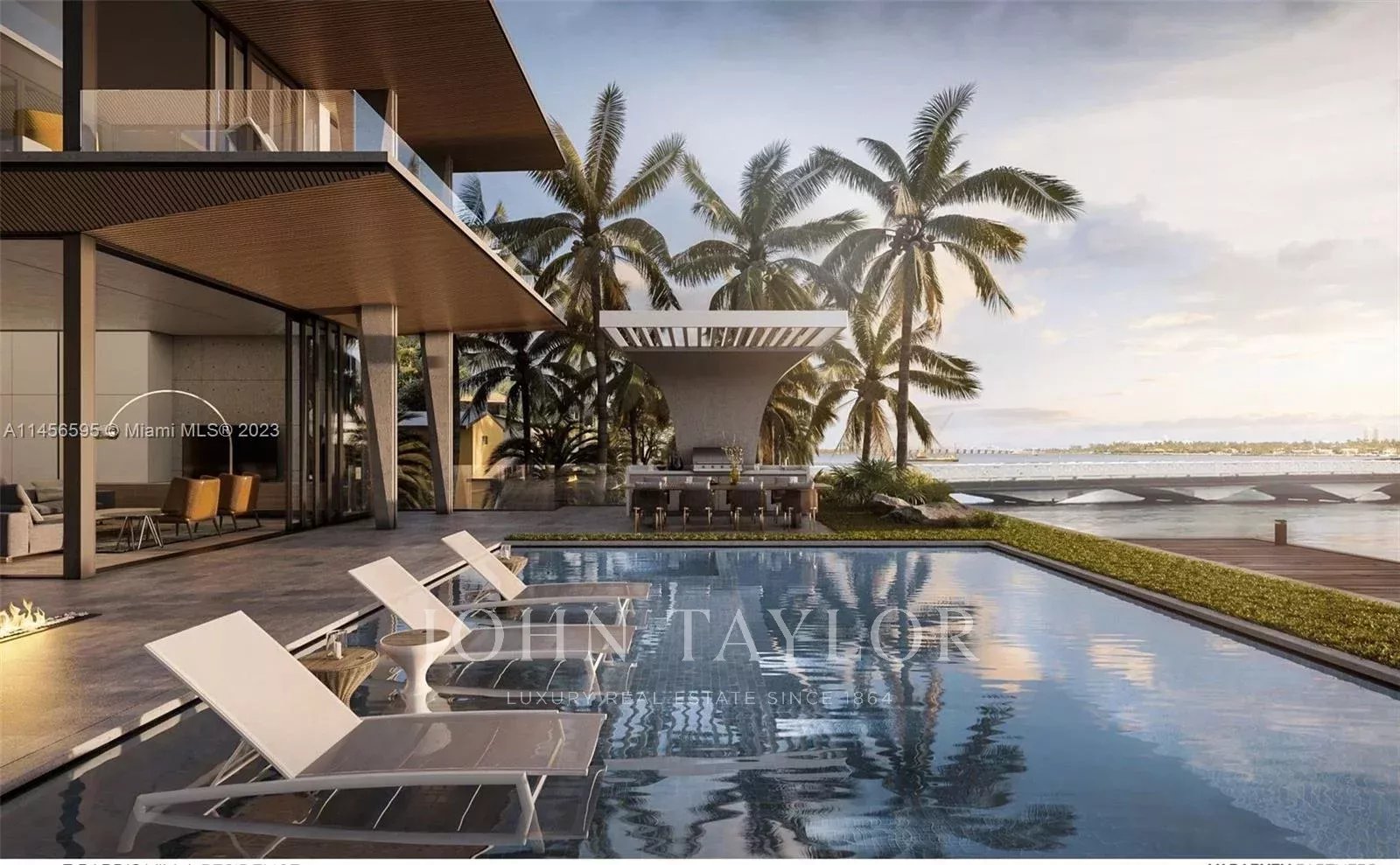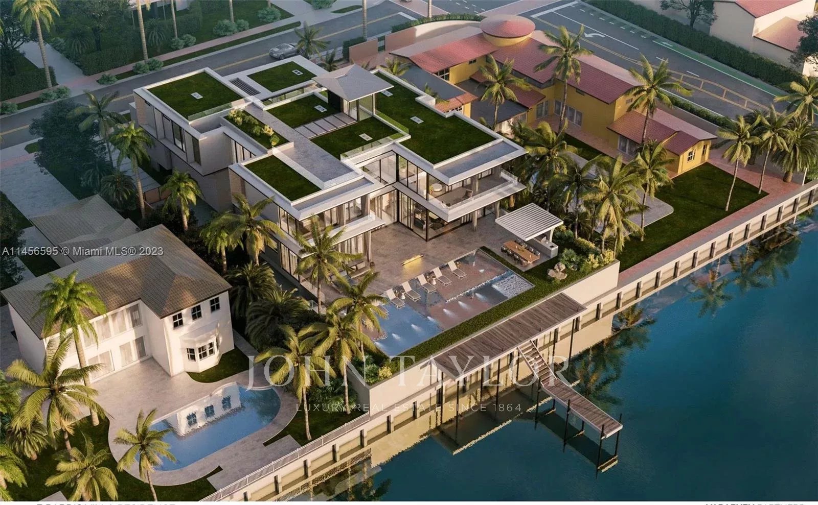 Welcome to villa paradis. This stunning ramindesigns masterpiece is under 12 months from completion. Set on a 15,750 sq ft lot, this 7 bd/7. 5 ba mansion skillfully combines organic elements w/ modern home technology, 90 feet of water frontage & open bay views. 12 ft ceilings, custom boffi kitchen, es automated windows, full home theater & unrivaled master suite. 3 story design allows for impressive water views. 4-level elevator for quick access from poolside to rooftop terrace w/ outside bar + kitchen & 360-degree views of downtown and miami beach skylines. The front elevation, neatly disguised by a natural landscape knoll, holds understory parking for 10 cars. Huge backyard features 65' knife edge pool,10-ft seawall, boat lift, and dock for 2 large yachts. Walk to sunset harbor.